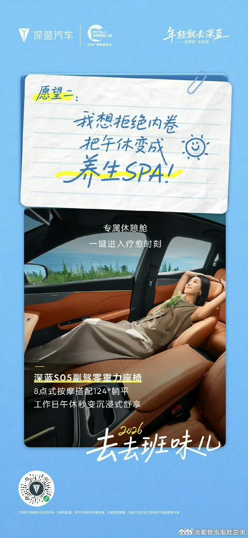 2026 还藏着哪些愿景? 是挣脱束缚的自在旅行 还是忙里偷闲的疗愈...... 深蓝S05 将愿望变成答案!