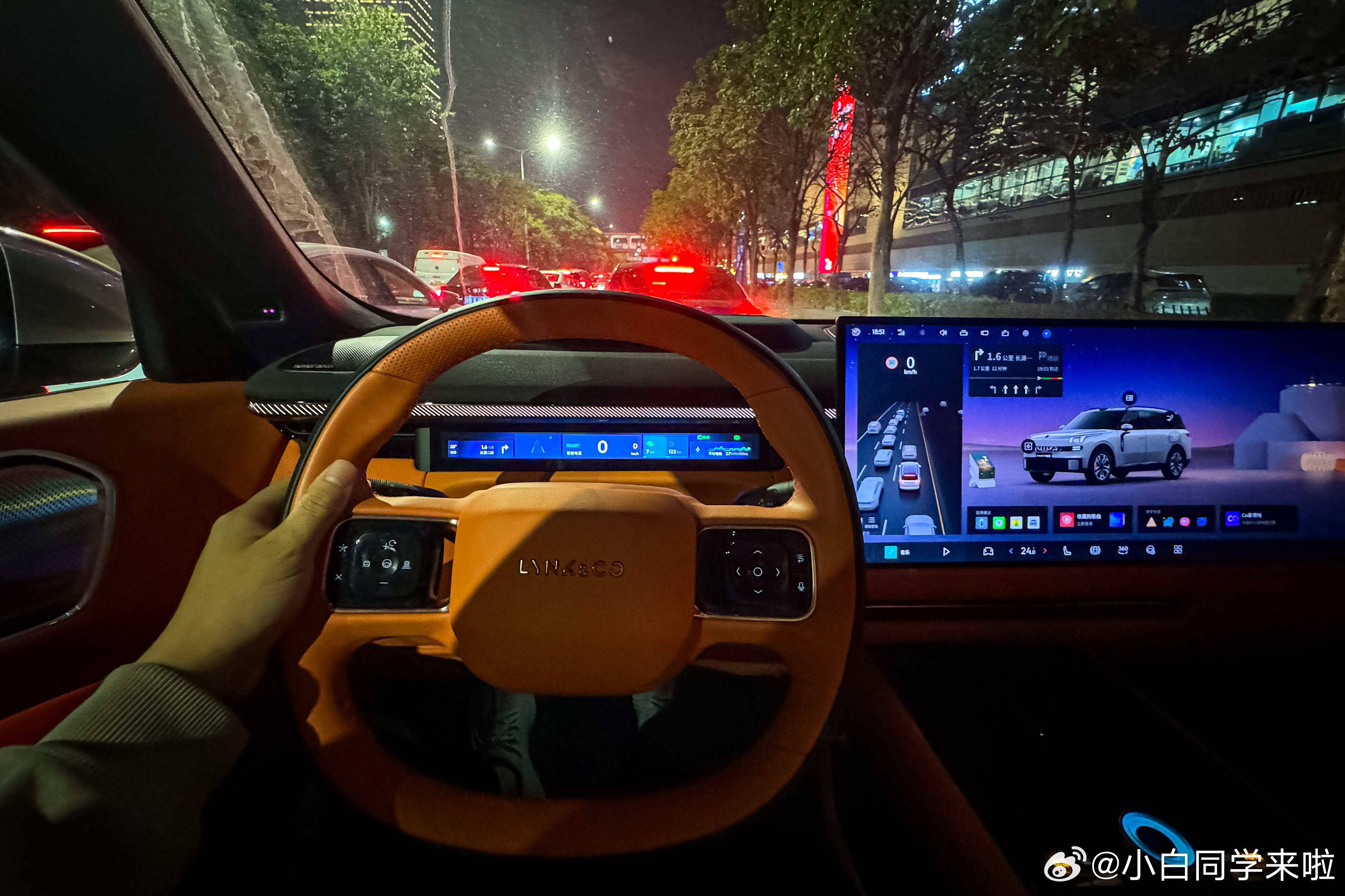 第一次开领克 900,这台车从 4 月完正月开始交付,全年交付 5 万多台。所以从交付成绩来看,领克 900 是一台很成功的车型。今天短途开下来,能明显的感受到这台车就是家庭用车,舒适风格的调校,但开起来又挺好开。中控+副驾一体大屏确实挺炫酷,很多交互、动画可以依赖这种完整大屏做的更完美一些。我还提期待理想 L 大改后用上这种大连屏会有怎样的创新玩法。因为现在的 L 系列我上车就会把副驾娱乐屏关闭,发挥不出更大的价值。但也有需要优化的点,那就是 HUD,首先 AR-HUD 清晰度不行,显示内容巨多,面积又很大,包括转向灯盲区影像也做了。清晰度没那么好的同时又会遮挡视野,上车没一会我就给关了。新能源汽车大v聊车