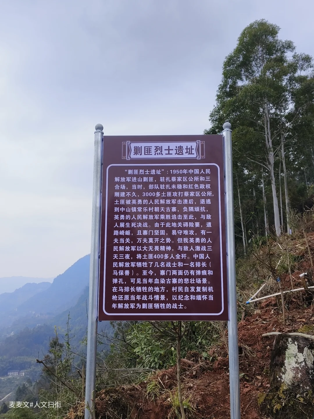 此地丹霞绝壁,鬼斧神工,关碍险要,易守难攻,有一夫当关,万夫莫开之妙。至今,寨门两面仍有弹痕和弹孔。可见当年解放军战士为剿匪血染古寨的悲壮场景,可忆今日幸福生活来之不易。