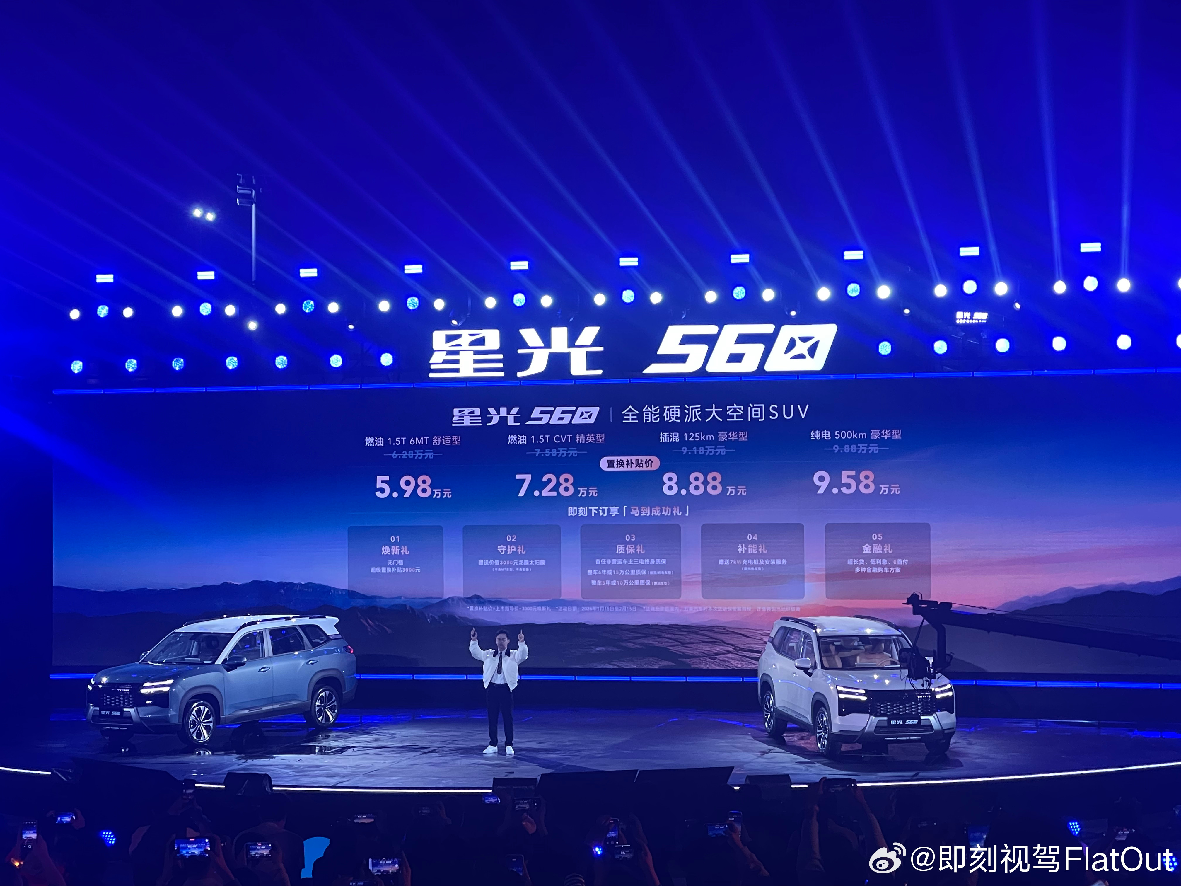 星光560上市惊喜价59800起今晚的星光560上市,在海南封关后的第一场汽车发布会,也是我2026年第一次来海南,不得不说,五菱是懂得挑地方的,因为最近的海南温度很舒服。而且,众所周知,每年的冬天的海南,是大家过冬的首选地,星光560选择在春节前发布,也是给春节自驾来过冬的一个选择。毕竟,星光560的5.98万~9.58万元限时置换补贴价确实把大尺寸硬派造型SUV的价格拉下来了,全系标配30多项配置,直接把性价比拉满了。为什么这么说呢?首先不得不提的是一车三动力,足够丰富的动力选择,可以进一步覆盖不同地区的消费者,也就是说,不需要对星光560有动力选择上的顾虑。譬如对来海南过冬的消费者,广东用户可以买纯电版本,远的可以选插混版本,地方寒冷来的直接选燃油版本。第二个值得提的点是尺寸。星光560在这个级别里是有足够优势的,比它大的没它便宜,比它便宜的没它大,另外因为装载空间大,它很适合春节自驾游和串亲戚,满满当当坐5个人,763L常规容积+184L隐藏式下沉空间后备箱依旧有足够的空间。很多人觉得星光560除了上面这两个亮点,就没有其他可说的了。其实吧,大家放眼去看,无论燃油还是新能源,这个价位能买到这种规格尺寸的SUV车型真的只有星光560。换一个角度思路去说,如果这个价格的星光560把10几万的SUV配置配齐,你才会感到害怕,一分钱一分货的道理,大家应该懂吧。星光560反映出来的是基于用户群体所需要的,即人民需要价格不高但很需要大空间的SUV,所以五菱就把星光560造出来了。今天的发布会,我很喜欢“大有奔头”的slogan ,毕竟新年伊始,无论工作还是生活,都意味着新的希望和开始,那必须有奔头。所以星光560以“大有奔头”开端,作为一款全新SUV,某种程度上来说,它以这个价格进入市场,也是正式拉开了2026年车市竞争的序幕了,高质低价也许从此成为新常态。星光560空间夯爆了