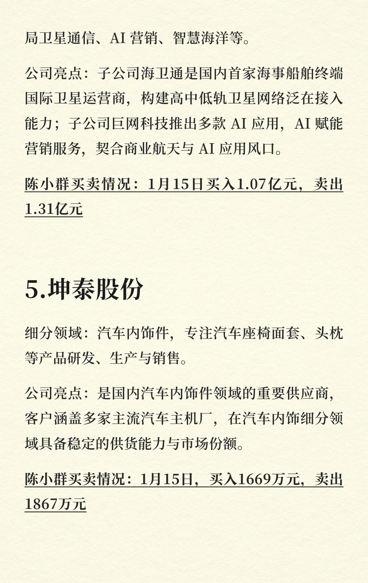 1月15日,陈小群交易情况一览