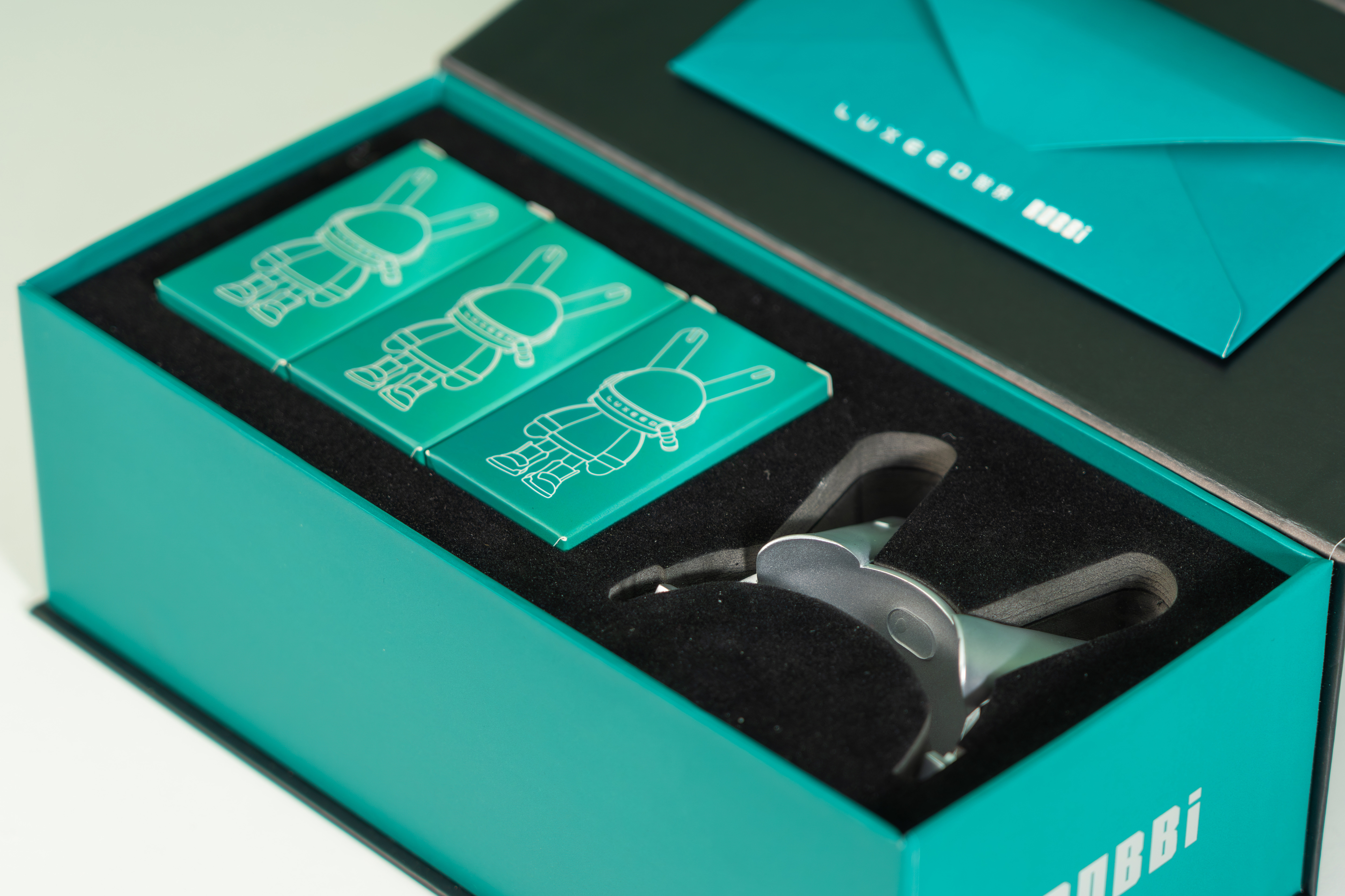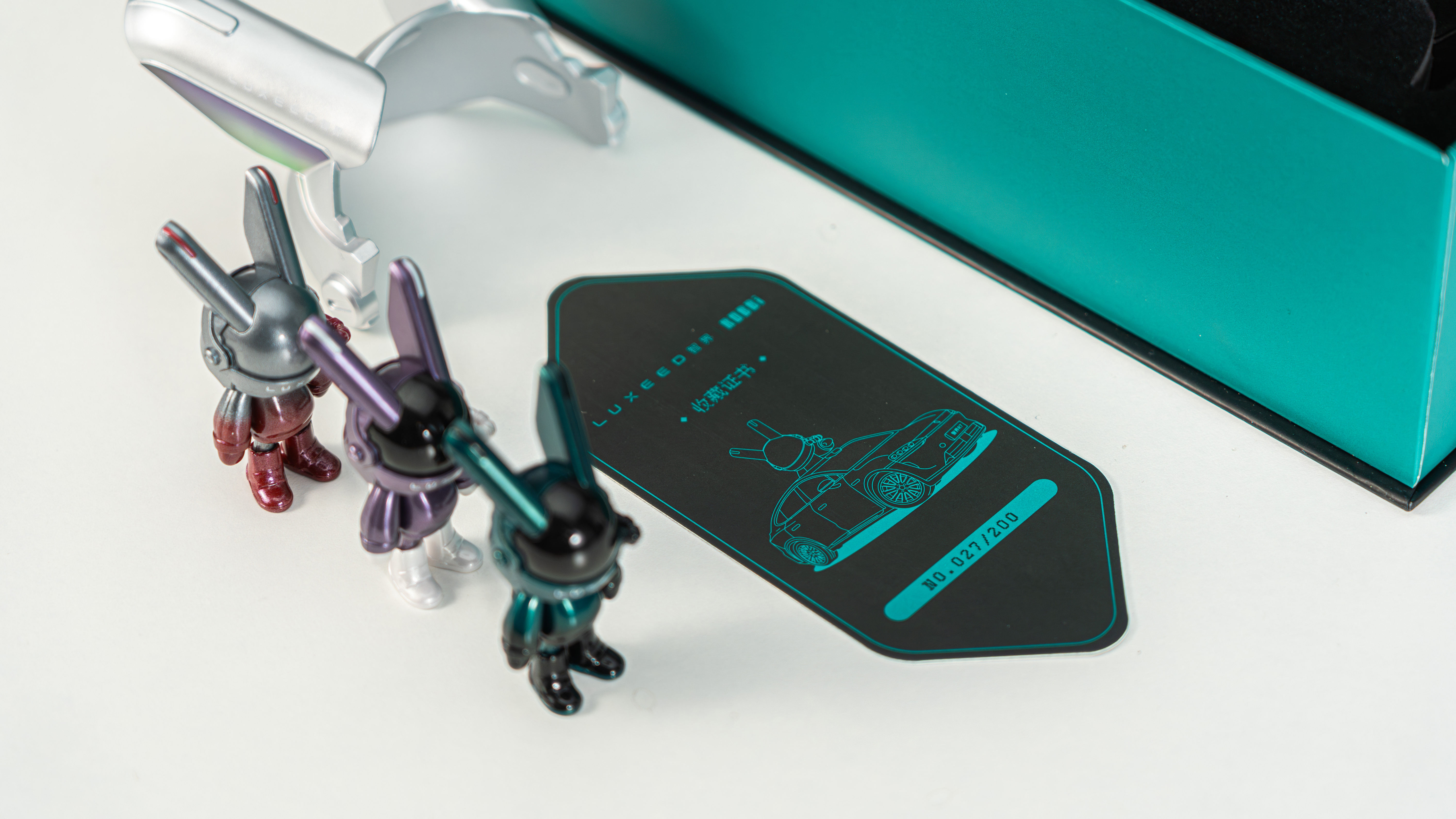 智界都进军潮玩界了,和ROBBi出了个限量联名礼盒,太空兔的科技风和智界的感觉还挺搭。一个可以放在星环散射体上面的ROBBi太空头盔音响帽,还有三个迷你ROBBi手办,全都是来自智界的车漆和内饰配色组合,会玩。智界大有可玩
