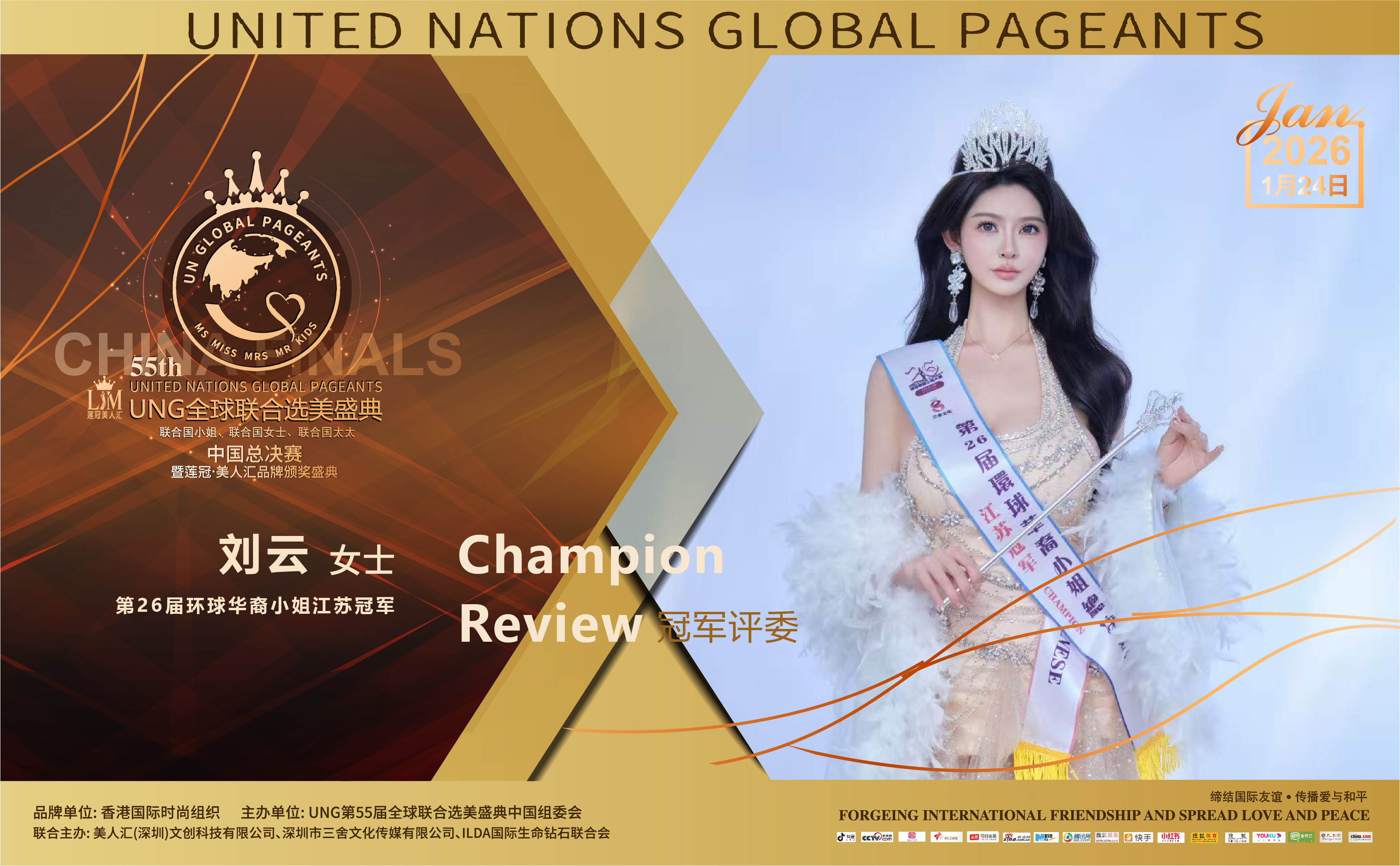 感谢主办方的邀请,期待这场颜值与实力的盛宴。1月24日敬请关注全球联合选美盛典