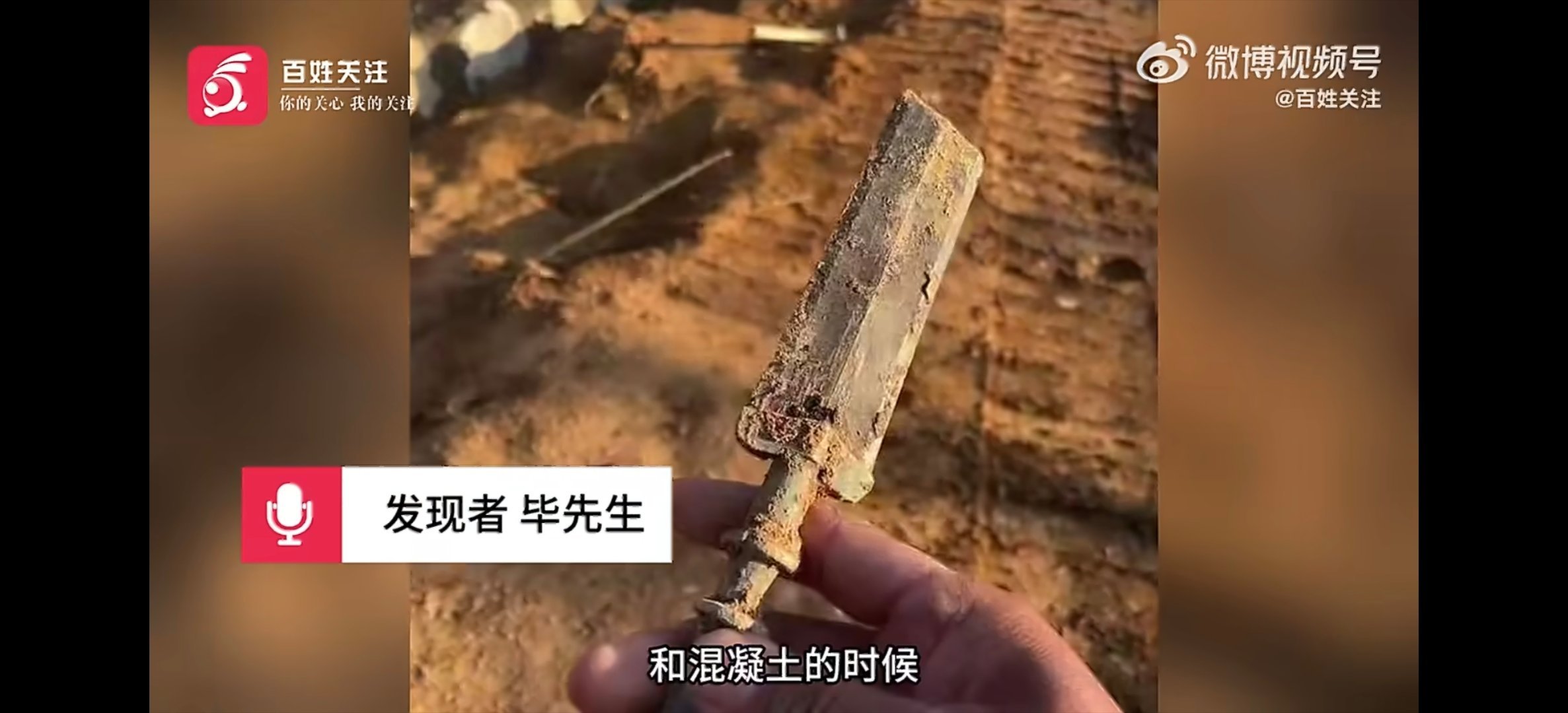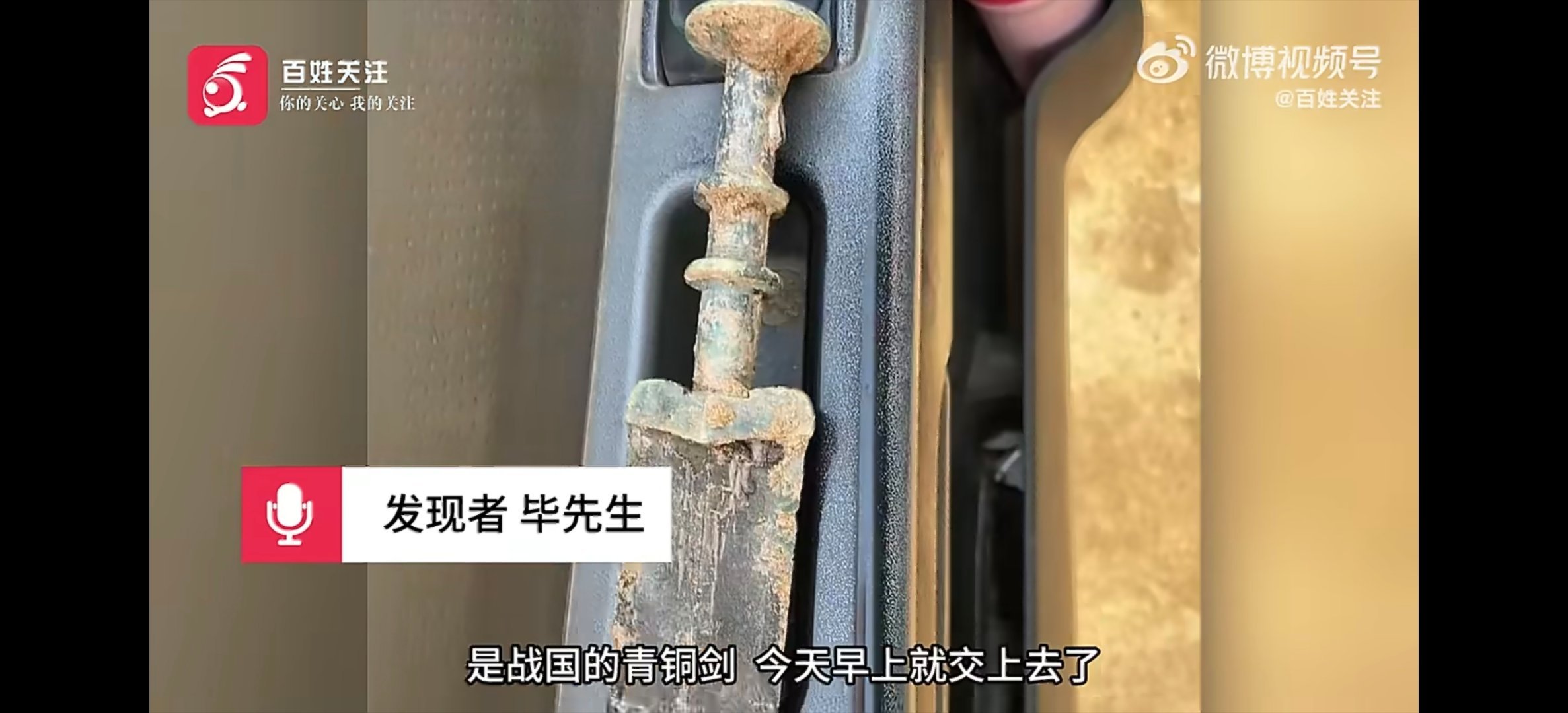 湖北一男子挖出青铜古剑上交博物馆真的是青铜古剑看样子前面剑端好象断了。不知道工地上有没有?
