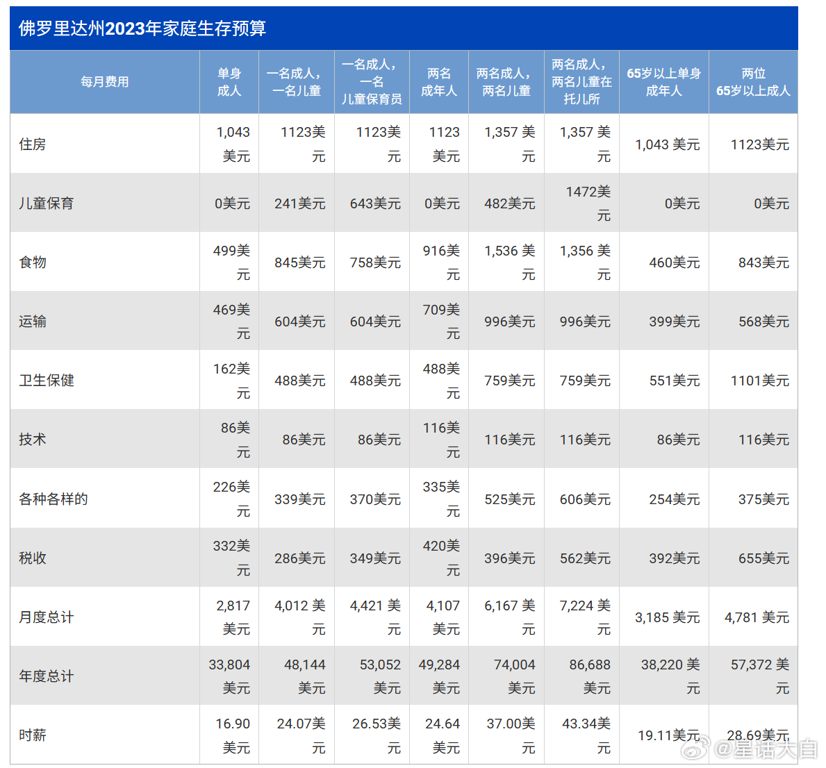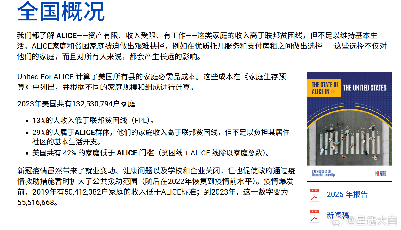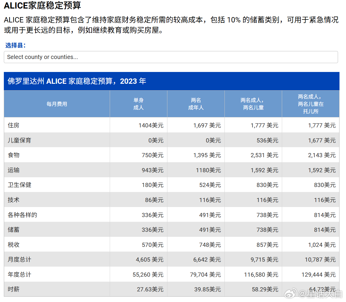 美国有一个比较接近斩杀线,但又不完全一样的专有名词ALICE(Asset Limited, Income Constrained, Employed),直译就是“资产有限、收入受限、有工作”的人群,这些家庭的收入高于联邦贫困线,但收入低于基本生活成本线。所以这个ALICE线,就是基本生活成本线。收入低于基本生活成本线就叫ALICE群体。据统计,美国有29%的人属于ALICE群体,他们的家庭收入高于联邦贫困线,但不足以负担其居住社区的基本生活开支。加上13%的人收入低于贫困线,也就是美国低于ALICE线的人群比例是42%;这其实就是属于可能触发斩杀线的群体。而且美国这个ALICE线还随着通胀不断上升,因为生活成本在不断提高。美国四口之家(两个大人两个小孩)的基本生活成本已经涨到一年8万美元左右,具体各州不一样。以佛罗里达州为例,基本生活成本线为,单身成年人每年3.38万美元,四口之家为每年8.67万美元。佛罗里达州有47%的家庭年收入低于ALICE门槛,也就是一个单身成年人年收入低于3.38万美元,四口之家年收入少于8.67万美元的总体比例达到47%;要注意,这是基本生活成本,是在当前经济环境下生活和工作所需的最低成本。想要有比较稳定的生活,可以应对紧急情况和继续教育等,所需的成本,单身成年人为每年5.5万美元,四口之家为12.9万美元。综合来说,在美国个人年收入3.5万美元,只能刚好满足基本生活开支,会挣扎在温饱线上,面临触发斩杀线的可能。年收入超过5万美元,才能拥有比较稳定的生活。