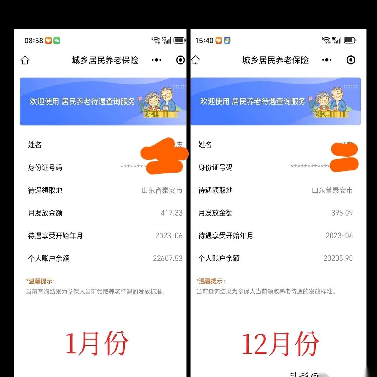 我养老金领了两年半,一直都平平稳稳,每个月三百多。 就在上个月底,我还特意查了下,个人账户里是20205.90元,顺手截了个图。 结果今天手闲,又点开看了一眼,我捏着手机的指头都紧了一下。屏幕上的数字,变成了22607.53元。 凭空多出来2400多块。 我第一反应是看错了,退出去,重新登录,数字还是那个数字。一月的钱还没发,账上怎么会自己长钱? 我赶紧往下划,去看每月发的钱。以前是395.09元,现在,它赫然写着417.33元。 每个月也多了22块。 这下我坐不住了,直接点开缴费明细,一笔一笔往前翻。翻到2020年,记录上写着缴费1913.34元。不对,我清清楚楚记得,那年我交的是个整数,1500元。 我心跳开始有点快,继续往前翻。 2019年,我交的500,记录变成了1575.33元。 2015年,我交的300,记录变成了701.31元。 我交的全是整数,现在全变成带小数点的怪数,精确到分。 合着我交的总钱,从23790元,自己涨到了26152.46元。 这都快十年前的缴费记录了,我都退休两年半了,它怎么还能自己跑回去修改? 这就好像,有人悄悄穿越回十年前,往我的账户里塞了一把零钱。你说这是系统出了个善意的bug,还是有什么我不知道的补贴,现在才算清?