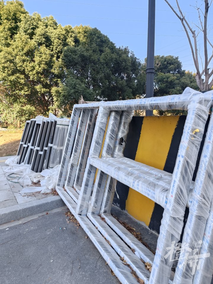 小区大门前道路堆放着的封包阳台材料