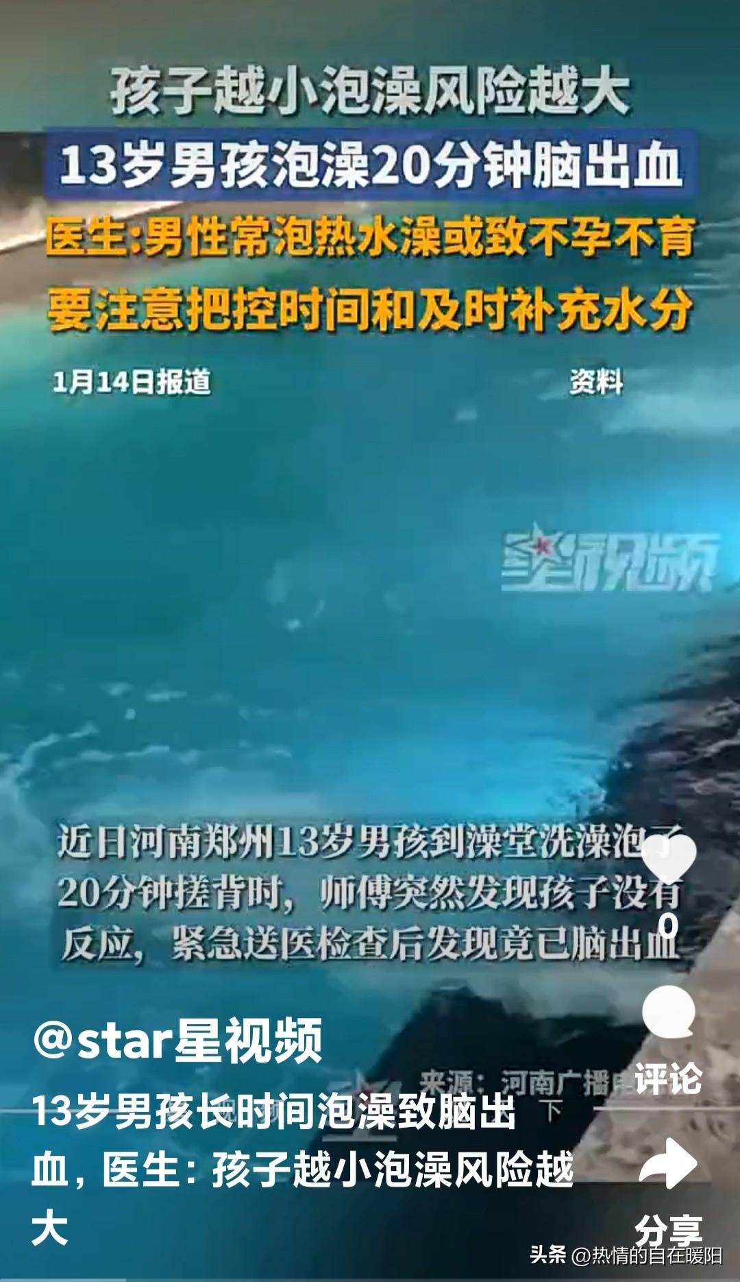 家有小孙子,每次他流鼻涕时,儿媳总喜欢用艾草包煮水给他泡澡。虽说偶尔泡泡能驱寒,但也清楚经常泡容易让人上火。最近这小家伙还爱上了泡脚,每次看到大人泡脚,他都吵闹着也要泡,没办法,只能让他稍微泡一会儿。 看到郑州13岁男孩泡澡20分钟后突发脑出血的新闻,着实让人捏了把汗!医生表示,孩子越小,泡澡的风险就越大,男孩经常泡热水澡还可能影响生育功能。 我赶忙去豆包了解了一下泡澡、泡脚的注意事项(图二、图三)。 各位爸爸妈妈、爷爷奶奶,给孩子泡澡、泡脚时,一定要把控好时间,及时给孩子补充水分,安全永远是第一位的! (图片来自网络) 艾草包泡脚