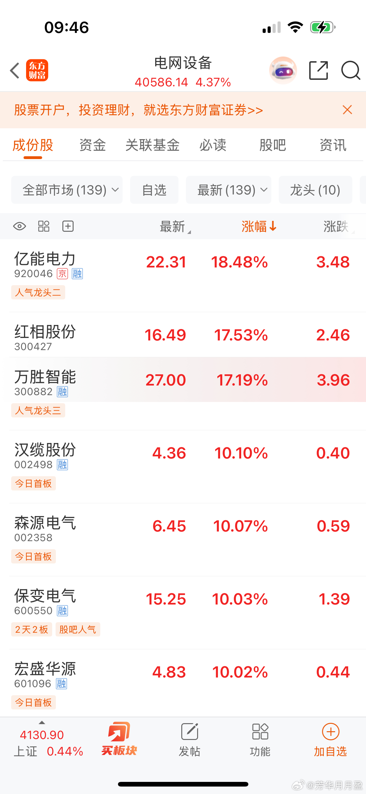早盘电网设备股大面积高开,保变电气、三变科技、新联电子涨停,思源电气触及涨停,续创历史新高,双杰电气、国电南自、中国西电、安靠智电跟涨。消息面上,国家电网公司发布消息称,“十五五”期间,公司固定资产投资预计将达到4万亿元,较“十四五”增长40%。此外思源电气业绩快报显示,2025年净利润同比增长54%。