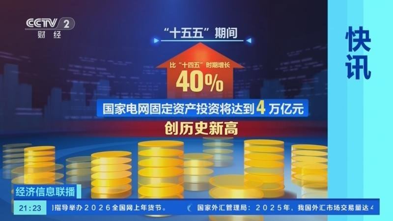 国家电网:“十五五”期间,国家电网固定资产投资将达到4万亿元,创历史新高,投资总额比“十四五”时期增长40%。资金将重点用于科技创新、新型电力系统建设等方面。服务经营区风光新能源装机容量年均新增约2亿千瓦,目标使非化石能源消费占比达到25%、电能占终端能源消费比重达到35%。重点包括提升系统调节能力、优化抽水蓄能站点布局、支持新型储能规模化发展,并初步建成主干电网、配电网和智能微电网协同的新型电网平台。