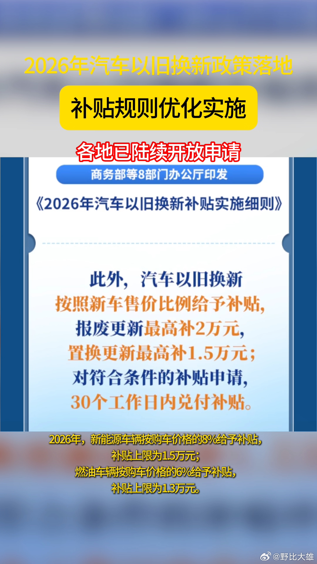 2026汽车国补新变化 gogogo新国补来咯!官方表示汽车以旧换新补贴有变化,定额变比例,报废置换标准似乎也在收紧。你会因为补贴而消费吗?新一轮国补应该怎么领