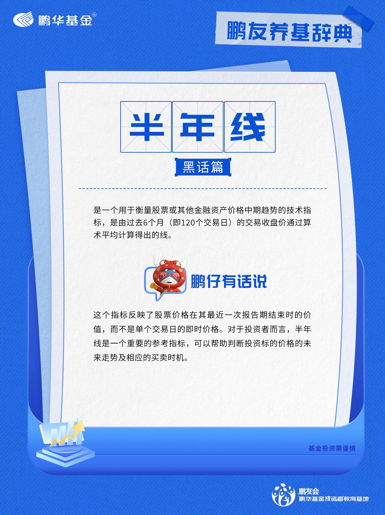 鹏华基金投资者教育基地“突破年线”、“站上半年线”是我们在金融投资中经常看到或听到的词汇,甚至还有不少投资者把半年线视为中等级别的牛熊分界线,认为半年线的走势在一定程度上可以代表市场的中期趋势,那本期鹏友养基辞典带大家了解下什么是“半年线”~基金理财