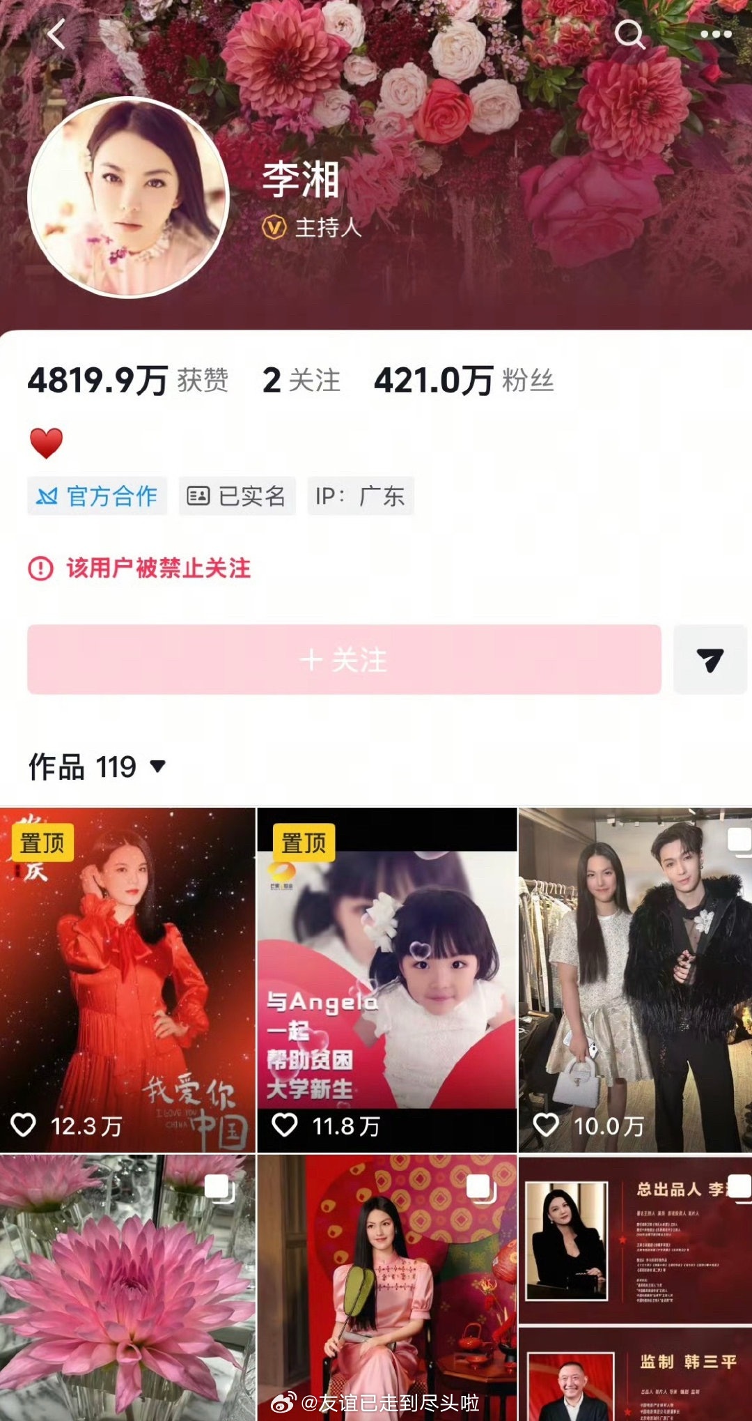 李湘全平台被禁止关注了她咋了?没听说有什么事啊,这几年唯一的热点都是发王诗龄吧