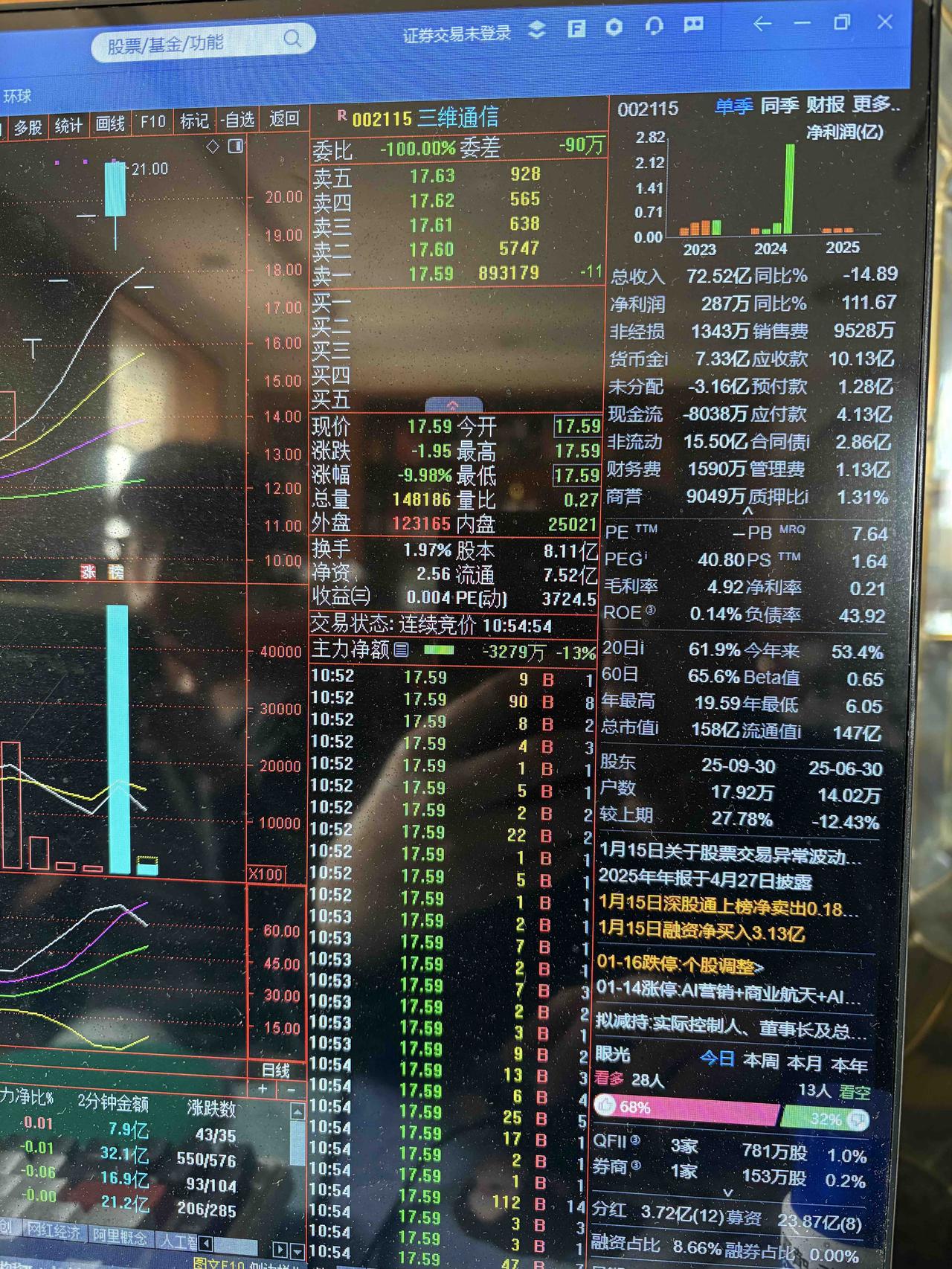 网红庄家陈小群这个人有多可恨,他通过资金优势,把股票从低价位一般是连续涨停板拉倒三倍左右,在过程中他边拉涨停边出货,等到股价到天价以后就疯狂的出货,留下接货的股民和机构一地鸡毛。典型例题海格通信从13块开始拉涨停一直拉到26.82元,当天成交金额达到170亿元。他疯狂出货以后连续两个跌停板成交量不到10亿,今天还有散户的筹码347万手封在跌停板上出不去,也就是说有160亿的资金被套在高位。相同手法的股票还有金风科技,岩山科技,神剑股份,三维通信等等。通过这种手段他赚到超八倍的利润,网传他又转战华盛天成。而且他通过抖音散布信息用什么9898是他买入的信号,现在全世界炒股的人都知道9898是他每日卖入卖出的信号,让广大不知道真相的股民跟风买入他的股票接受他高价位的筹码,然后他在高位突然的以跌停板卖出股票,一旦看到他卖出股票会造成巨大的恐慌,所有人的人都恐惧的也卖出股票,因为他的筹码比较低,所以就算给他三四个跌停板他还赚钱呢,所以股市有风险,入市需谨慎,特别不要加拱杆融资入市可能倾家荡产……