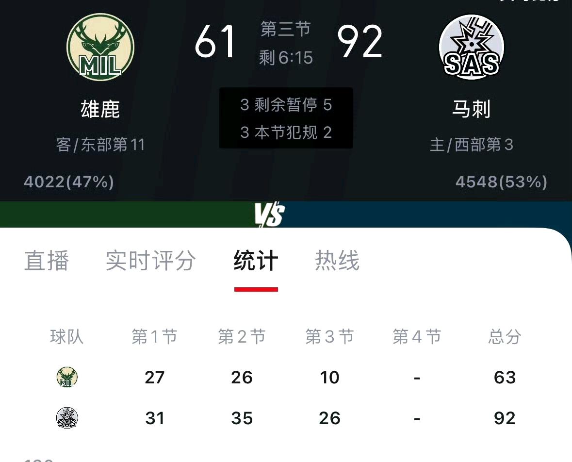 雄鹿竟然落后马刺31分了……字母哥,走吧,你不欠雄鹿什么了。