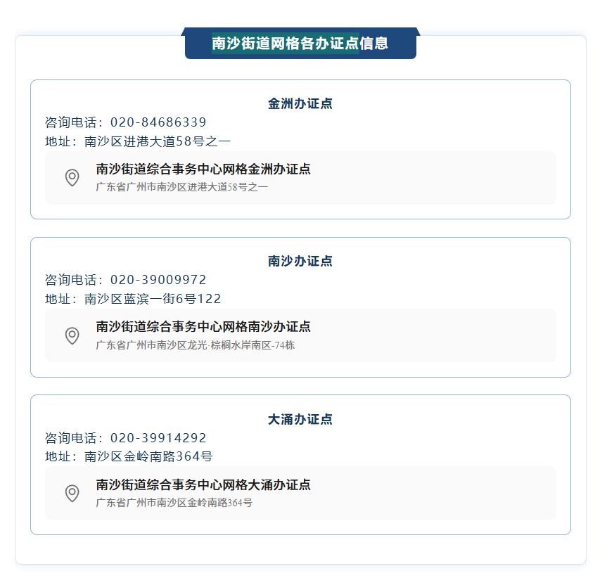 【南沙街道网格办证点+1】新来广州的,办理居住证是一个必备的操作,现在南沙街道新增一个网格办证点,让你办证更加的方便。 根据介绍,这个新增的办证点位于蕉门板块,龙光棕榈水岸南区,南沙街第二幼儿园的旁边。前面就有一个便民停车场,办完证还可以在小红果乐园玩一玩。 办公时间:周一至周五上午9:00-12:00,下午14:00-18:00(法定节假日除外) 业务范围:电子居住证业务(南沙街道范围)出租屋租赁备案业务、出租屋税费代征及发票开具业务、流动人口计生业务(凤凰社区、梅山社区、创享湾社区、蕉门村、东湾村、亭角村、坦尾村辖区范围) 办公地址:南沙区南沙街道凤凰大道蓝滨一街6号122 (龙光·棕榈水岸N74栋入口旁) 咨询电话:020-39009972