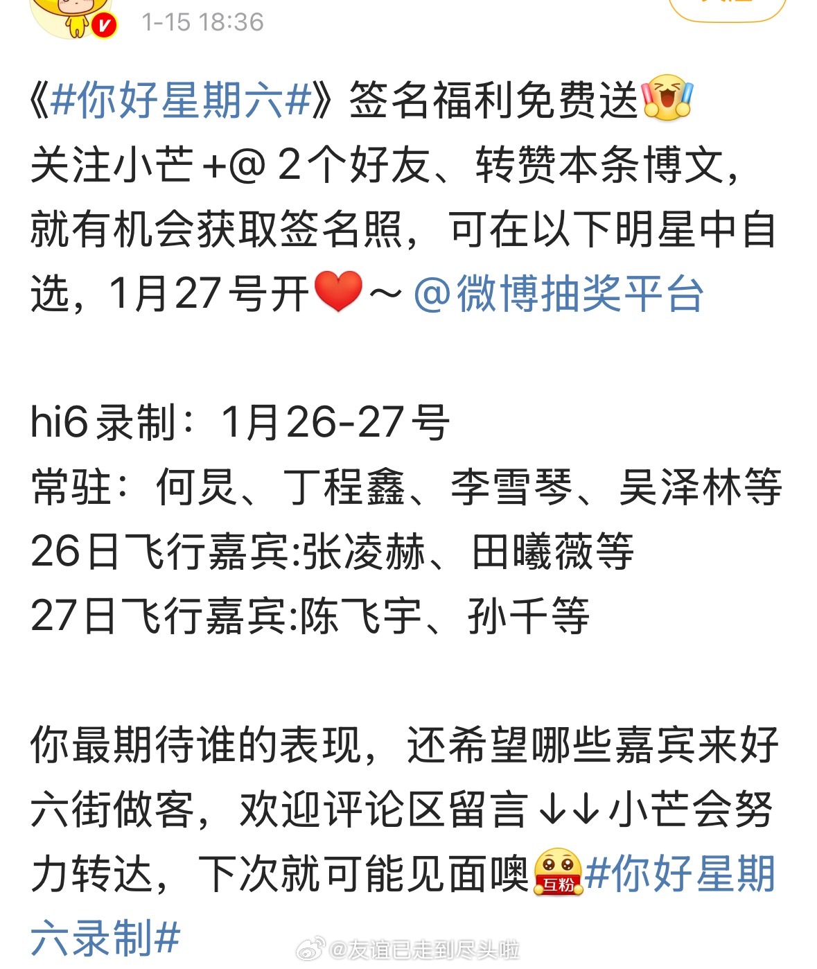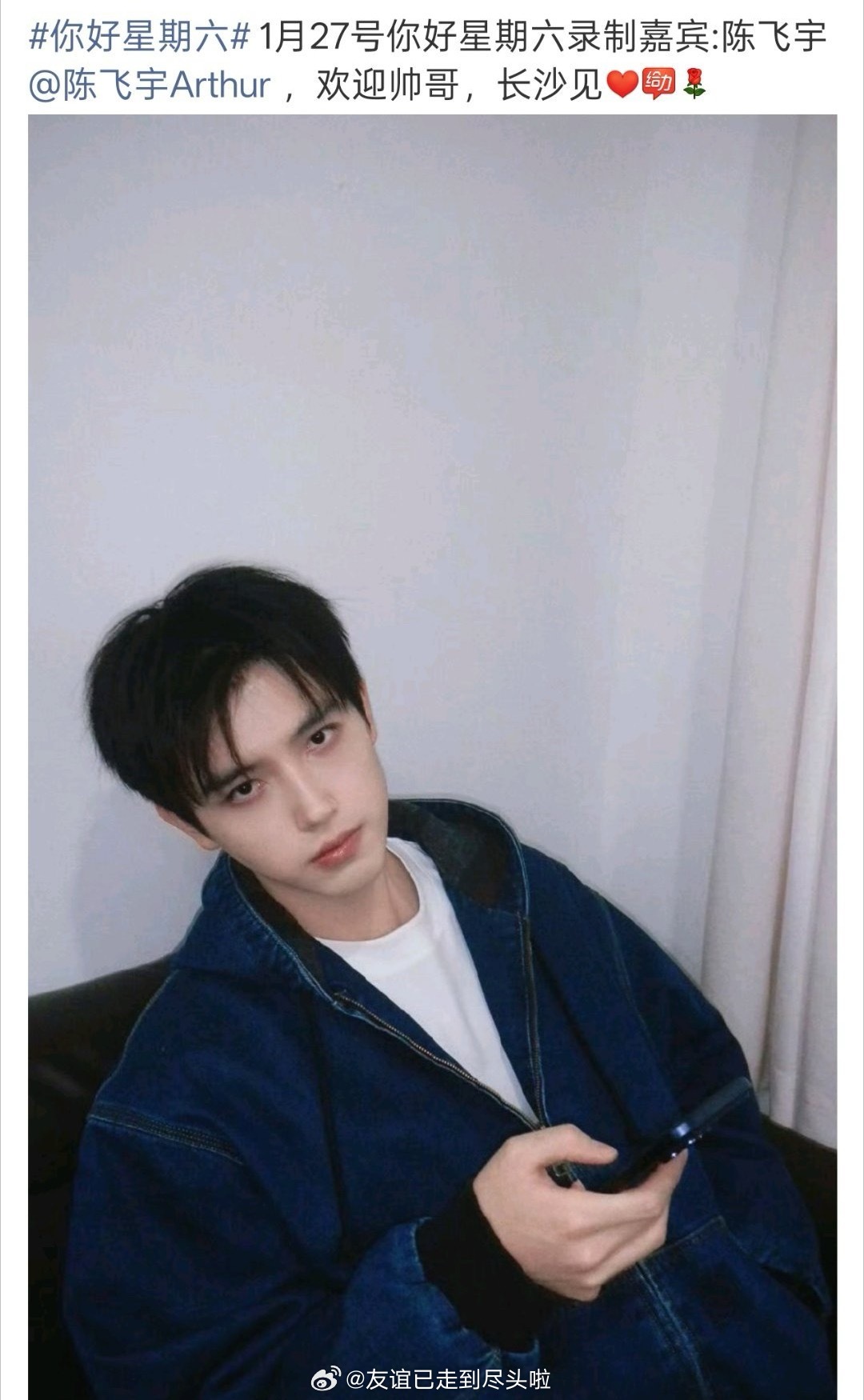 陈飞宇1.27上《你好星期六》,宣传新剧实用主义者的爱情 ,下个月还要去宣传慕胥辞