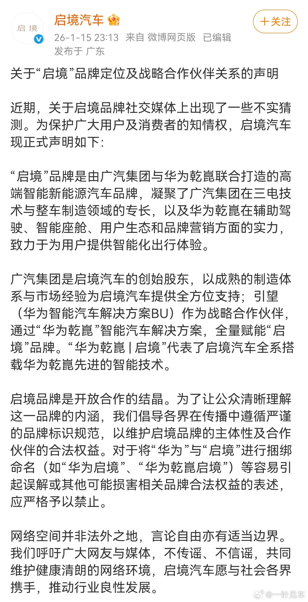 官方声明,“'华为乾崑启境'等容易引起误解或其他可能损害相关品牌合法权益的表述,应严格予以禁止”。所以说啊,某些自媒体不要老想着搞什么大新闻带头神神秘秘地装作知道什么内情,实则纯凭想象造谣,这下被打脸了多尴尬。