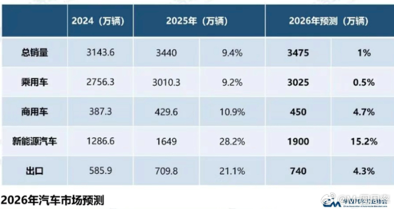 中汽协预计2026年中国汽车总销量3475万辆,同比增长1%。算是一个很保守的预测了,增幅几乎没有。大家觉得按2026年的行情,这个数能达到吗?大v聊车