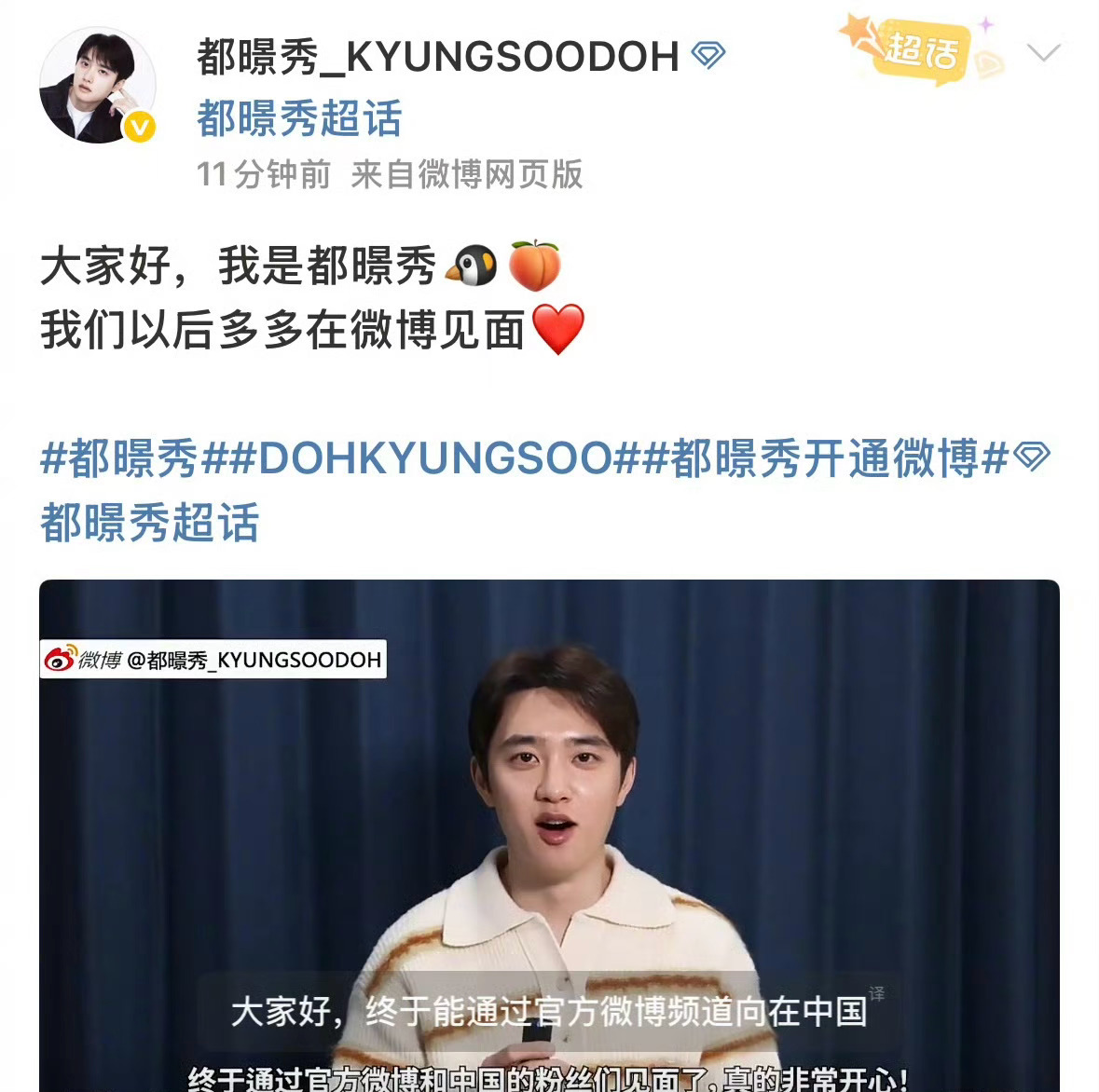 EXO成员都暻秀开通微博账号!