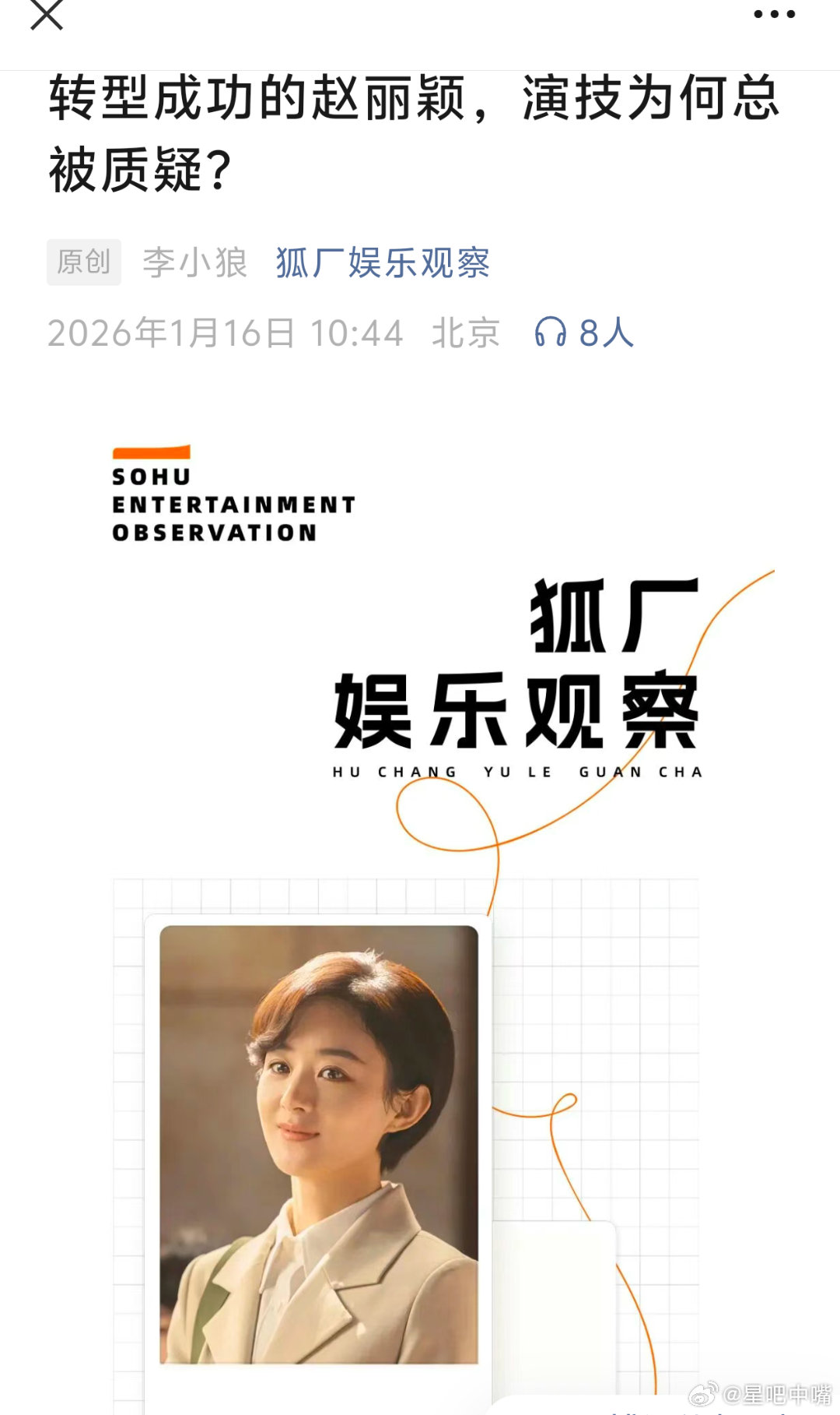 搬运狐厂娱乐观察:转型成功的赵丽颖的演技为何总被质疑?本嘴从没觉得她转型成功过!只不过是粉丝会吹而已!久而久之大家就以为转型成功了呢!