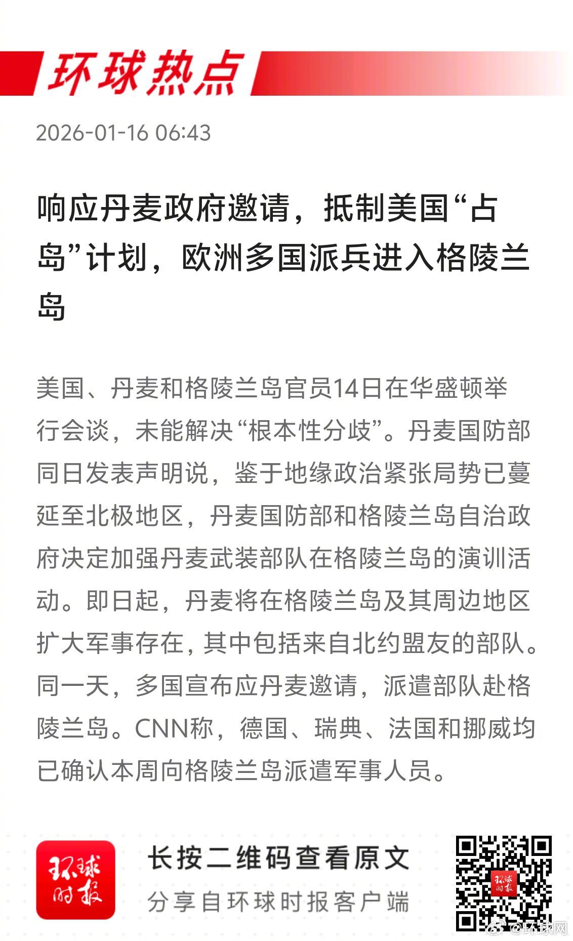 早安热点,新闻早点 ▲#欧洲多国派兵进入格陵兰岛#▲#韩国AI大赛多款模型与中国模型相似#▲#西方密集渲染美国动武威胁# #环球热点早知道#,了解更多↓↓↓