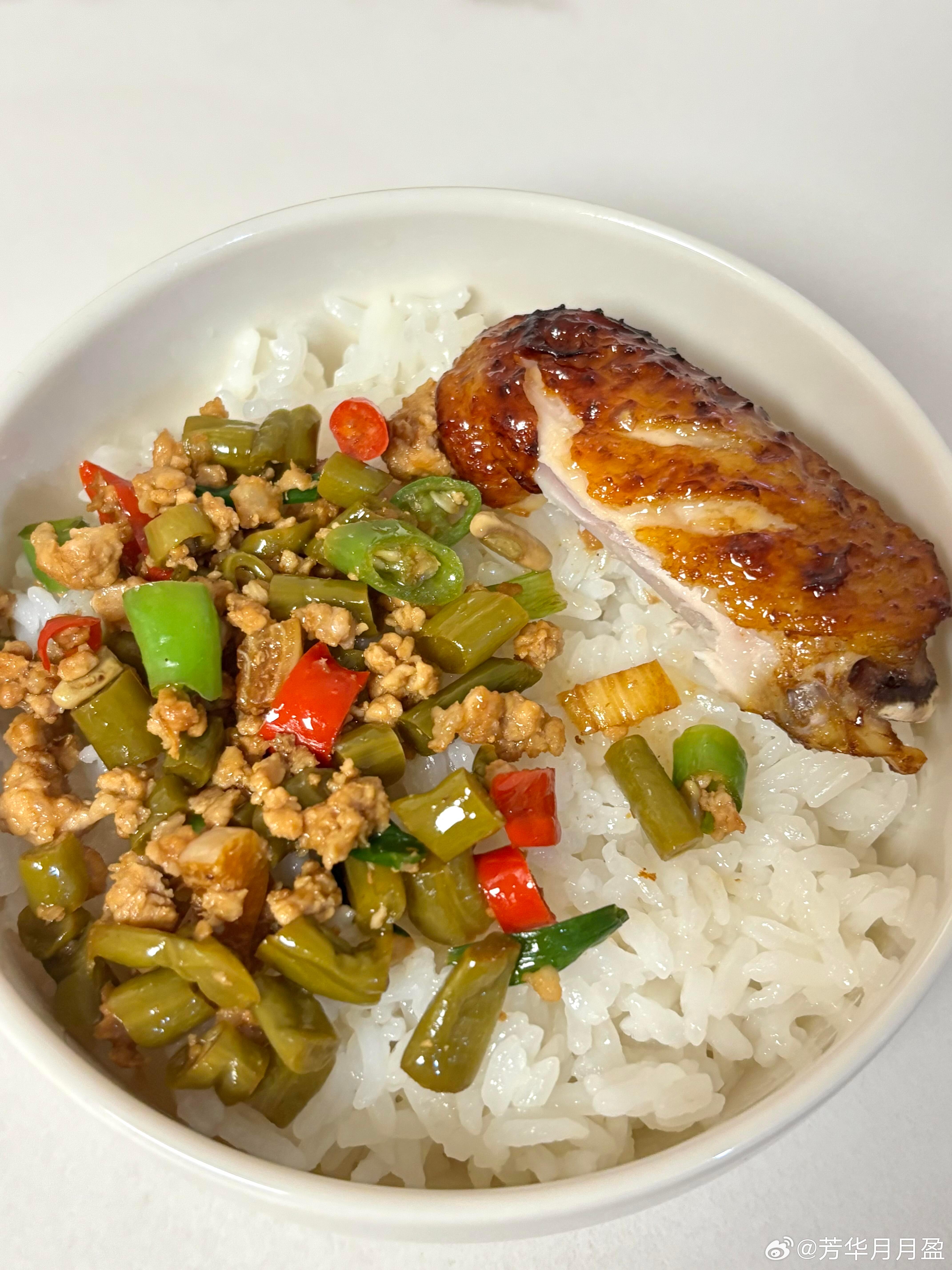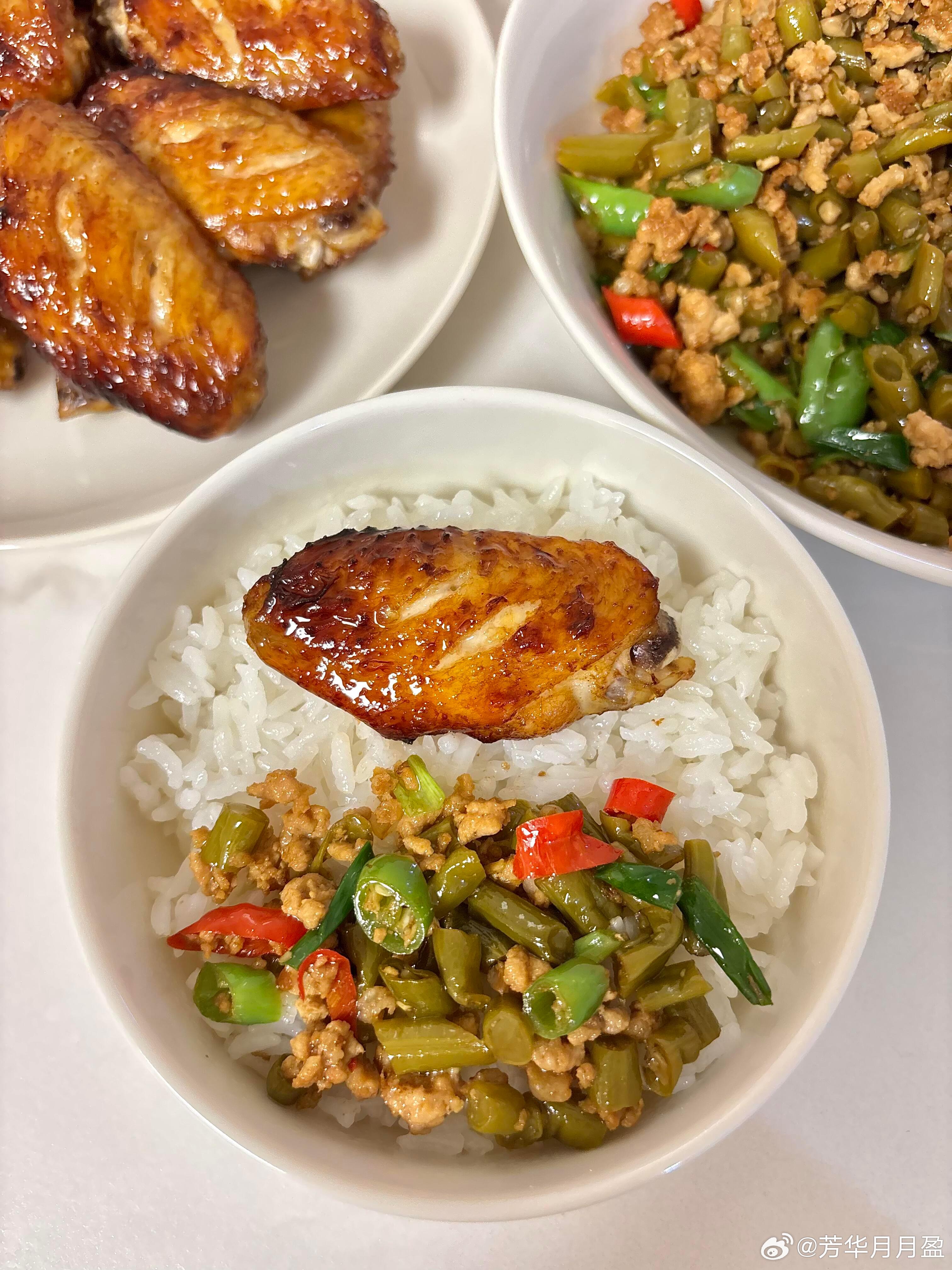 今天的饭🍚酸豆角炒肉末蜜汁烤翅
