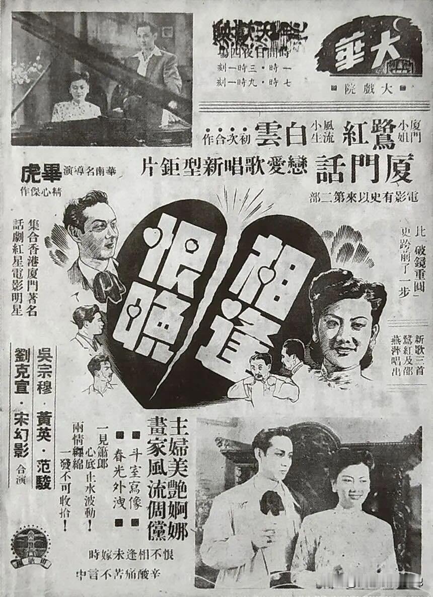 关于“厦语“(老厦门话、闽南语)电影在东南亚的传播:厦门班底,香港制造,南洋放映,台湾竞争。 中国首部厦语片(闽南语)《荔镜传》拍摄于1926年,该影片取材于流传闽南、潮汕一带的民间故事《陈三五娘》,编剧和导演是原籍晋江安海、当时迁居厦门的菲律宾归侨俞伯岩。该片后在台湾及东南亚地区放映,开启方言电影先河。 1945~1950年是厦语片的黄金期,总产量超400部,占当时方言电影的三分之一,风靡新马、菲律宾及台湾地区。当时的香港成为厦语片的制作中心,新光影业1947年推出首部港产厦语片《相逢恨晚》,主演是厦门籍演员鹭红。 50年代间,厦语片的题材从古装片扩展至时装片,古装片常见虎溪岩、鼓浪屿等厦门地标,时装片则呈现50年代香港市井风貌。如《厦门阿姐》、《鸾凤和鸣》,展现战后的华侨生活。1949年,台湾引进了第一部厦语古装戏剧片《雪梅思君》,获得了岛内民众热烈的回响。 此后的50年代,厦语片被大量引入台湾,一时间风光无限,厦语片所带来的巨大利润,直接刺激了台湾当地电影产业的发展,吸引了许多台湾民间的电影业者相继投入台湾闽南语电影的拍摄,1955年《六才子西厢记》开创台湾本土制作先河,催生了台湾闽南语电影的黄金时代。 60年代随着台湾闽南语电影逐渐崛起,市场竞争愈发激烈,台湾本土制作成本更低,歌仔戏名伶转型演员更具号召力,加之香港制作追量不追质,后期粗制滥造,重复翻拍导致观众审美疲劳,同时新马地区提高进口关税,香港影片发行受阻,1963年《无情海》成为港产厦语片绝唱,厦语片在短暂的辉煌后,就此谢幕。