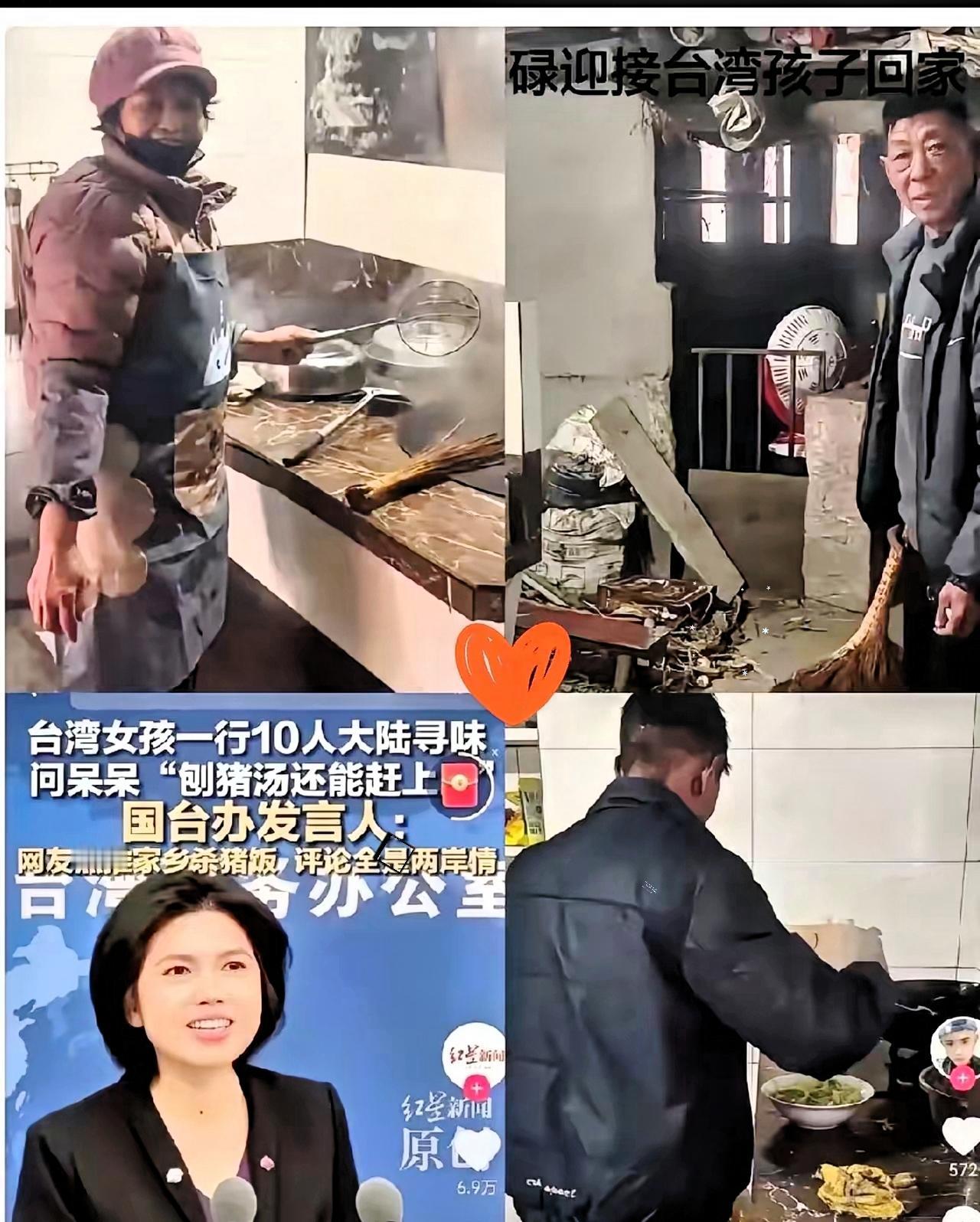 呆呆这回更呆了, 据说已被做通工作 呆呆的刨猪宴又重新开张了,这不,门口挂着红红的灯笼招牌,一对金色的招财猫正对着来往行人。 2000公里外的十人团专程赶场,这热闹里藏着最戳人的牵挂! 老两口忙得脚不沾地,劈柴择菜间全是烟火气,案板上肥瘦相间的土猪肉,冒着新鲜的香气。没有虚头巴脑的客套,围坐一桌就唠家常,这份热络哪儿是距离能挡得住的? 都说乡愁难解,其实解乡愁的从不是某样东西,是刻在骨子里的家乡味,是打断骨头连着筋的同胞情。隔着海峡又怎样,一碗刨猪汤、几句家乡话,就能瞬间拉近距离。 那些说不完的家常、道不尽的牵挂,都藏在这热气腾腾的宴席里。原来最牢固的联结从不是距离,是无论走多远,都能让人魂牵梦绕的故土情、同胞谊。