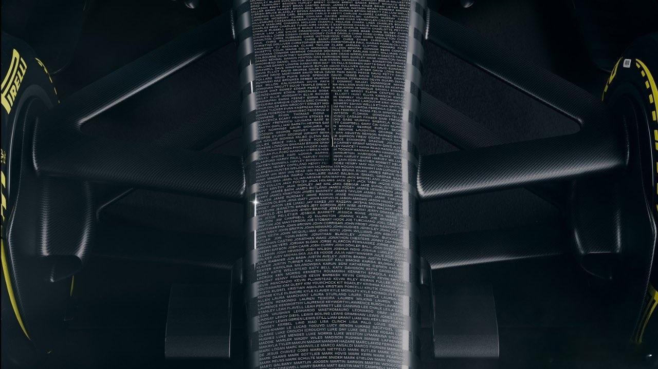 凯迪拉克新的F1赛车测试涂装发布,鼻锥写满了团队所有参与者姓名,最上方有佩雷斯、