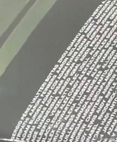 凯迪拉克新的F1赛车测试涂装发布,鼻锥写满了团队所有参与者姓名,最上方有佩雷斯、博塔斯和周冠宇的名字。凯迪拉克F1