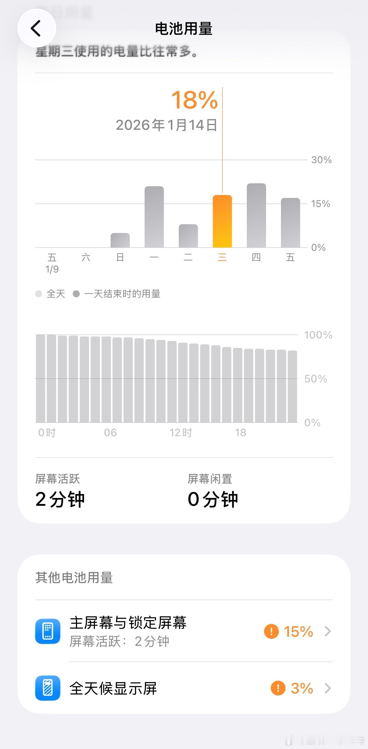 iPhone Air的续航是什么概念?正常待机,啥的都不做,开启息屏显示,wifi状态不开eSIM,一天24小时掉电20左右...