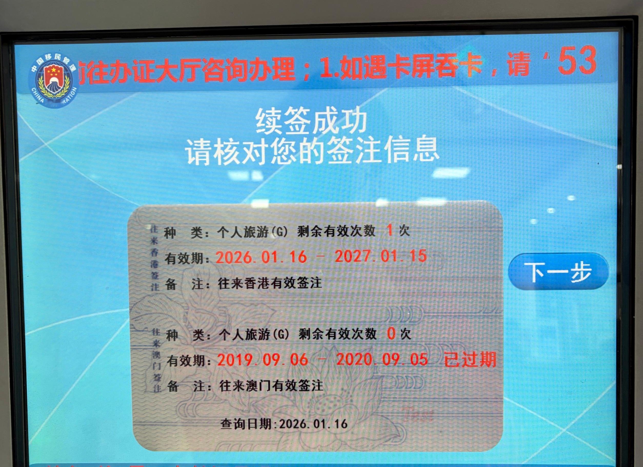 来自助机签注港澳通行证,还挺快的,一两分钟就能搞定,15块钱但是有一个问题,我签注的是个人旅游不是团队游,到时跟团的话能去得了吗?