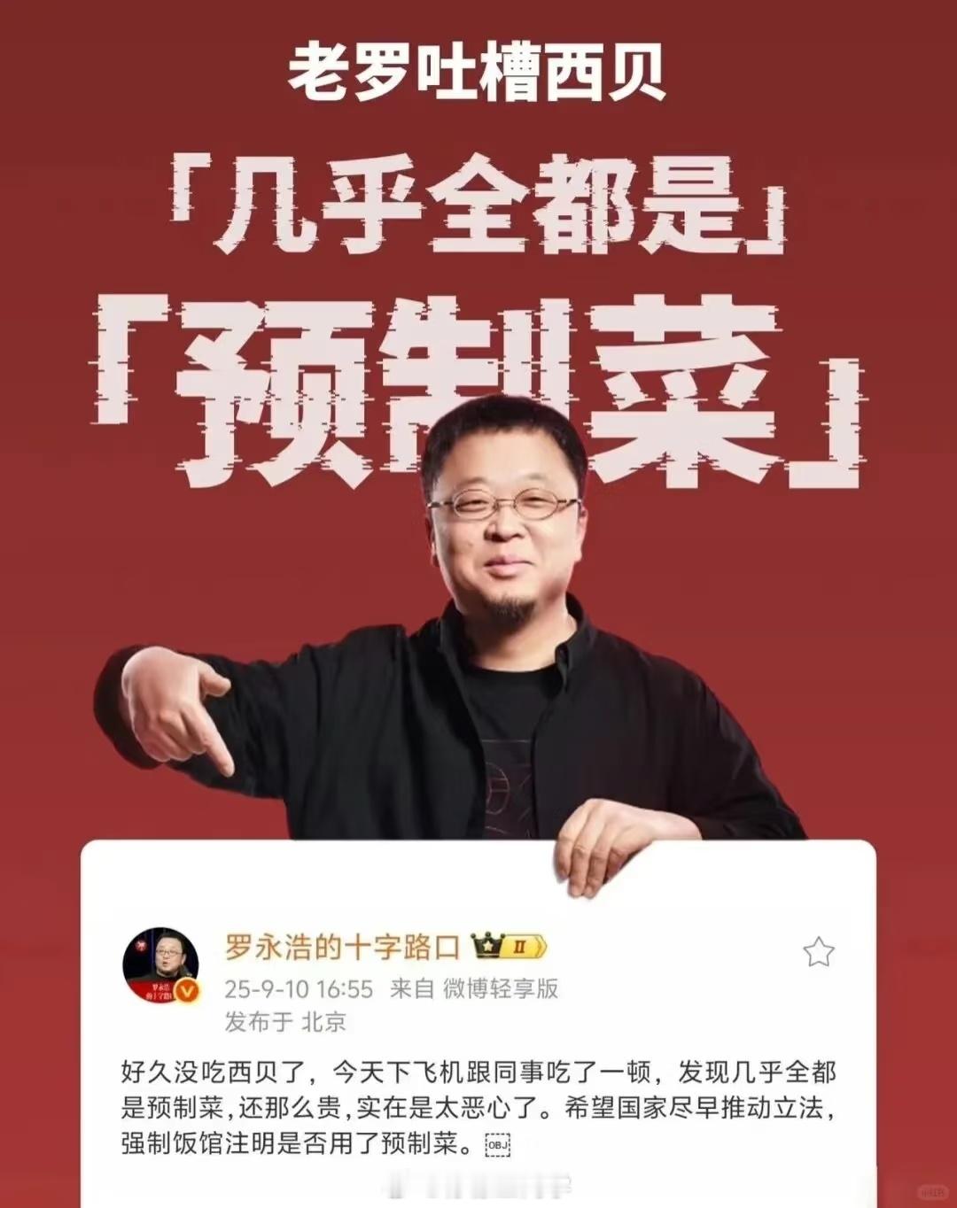 罗永浩回应西贝闭店西贝贾国龙遇到罗永浩,两个都较劲的人,所以才会有了现在的剧情发展给大家总结一下罗永浩的回应:自己的公司倒闭造成的员工失业是自己的问题,不甩锅,西贝现在也应该是这样西贝闭店4000员工失业和罗永浩没什么关系,是西贝自己的经营所致“西兰花事件”并不是罗永浩爆料,是西贝开放厨房后所致,是自家公关出了问题西贝一开始就应该做快餐行业,而不应该去正式的餐厅冒充现做这次你们支持谁?