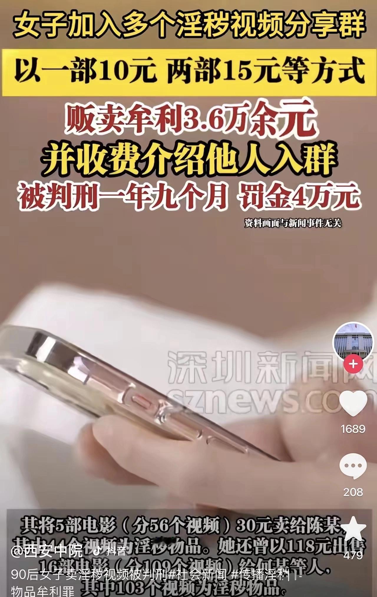 “5年赚3万,倒赔4万还留案底!”浙江90后女子龙某的这笔“买卖”,简直亏到了姥姥家!本想靠卖不雅视频赚点零花钱,没想到最后不仅钱没留住,还被判了刑,网友看完都忍不住吐槽:“这脑子到底在想啥?” 事情得从龙某的一个坏习惯说起,她平时喜欢看不雅视频打发时间,可又找不到稳定的观看渠道。一次偶然的机会,她发现可以付费加入专门的不雅群聊,群里会定期分享相关视频,二话不说就花了钱入群。 看了一段时间后,龙某觉得“只花钱看太亏了”,心里打起了小算盘:要是把这些视频下载下来转手卖掉,既能赚回会员费,还能额外捞一笔。说干就干,她开始在网上招揽客户,推出“10元一部、15元两部、20元三部”的套餐,向不特定网友兜售不雅视频。 可单部售卖又麻烦又容易被嫌贵,生意并不好做。龙某很快想到新招——建付费群聊,网友交了会费就能入群,随时看她发布的视频,不用再单独转账要片。就这么一来二去,她足足干了5年,累计获利3.6万余元。 龙某以为这是“一本万利”的买卖,却忘了“没有不透风的墙”。最终,她的违法行为被警方发现,经查实,她传播的不雅视频多达100余部,早已触犯法律。法院审理后认定,龙某的行为构成传播淫秽物品牟利罪,考虑到她有坦白、主动退出违法所得等从轻情节,判处其有期徒刑1年9个月,缓刑2年,没收违法所得3.6万余元,并处4万元罚金。 消息一出,网友们炸开了锅:“5年赚3.6万,平均一年才7000多,还不如去打零工”“里外里亏了7万多,这罪受得太不值”。很多人疑惑,不就是卖几部视频吗,怎么还构成犯罪了? 其实这里面有明确的法律规定,根据相关司法解释,传播淫秽视频20个以上,或者非法获利1万元以上,就构成传播淫秽物品牟利罪。龙某传播了100余部视频,获利3.6万余元,两个标准都远超红线,自然难逃法律制裁。按照《刑法》规定,这种行为最高可判无期徒刑,龙某能拿到缓刑,已经是因为有从轻情节。 还有网友问,“免费给朋友发几部,不收钱是不是就没事了?”答案是:当然不行!哪怕不收费,传播淫秽信息也违反《治安管理处罚法》,可能被处10到15日拘留,并处5000元以下罚款;要是传播数量多,还可能构成传播淫秽物品罪,面临刑事处罚。 更要提醒的是,缓刑不是“没罪”,龙某的犯罪记录会永久留存,对自己的工作、生活,甚至子女升学就业都会有影响。而且在2年缓刑考验期内,她必须定期报告情况,不能再犯任何错,否则会被收监执行原判刑罚。 赚钱终究要走正道,靠触碰法律红线的“捷径”牟利,最终只会得不偿失。龙某的案例就是活生生的教训,与其冒着风险赚这点小钱,不如踏踏实实干份正经工作。 大家觉得龙某这波操作亏不亏?你还知道哪些看似“来钱快”实则违法的行为?欢迎在评论区留言讨论! 来源:本文案件细节均来自公开报道及相关司法案例披露;法律依据来自《中华人民共和国刑法》《中华人民共和国治安管理处罚法》及相关司法解释等公开法律条文。