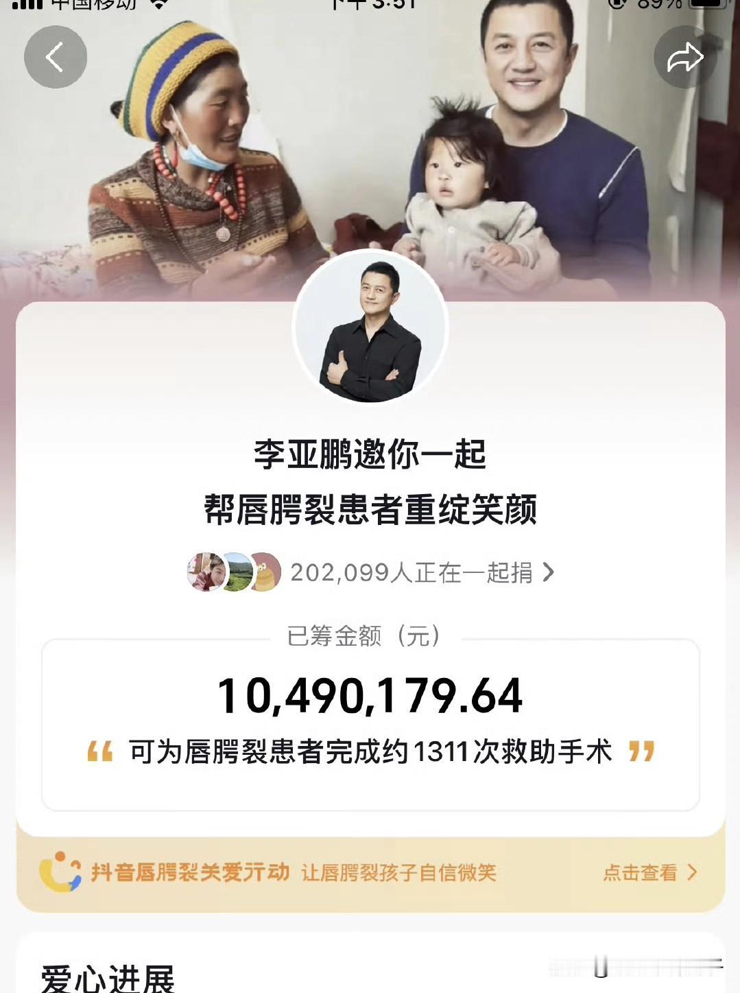 看了一下,最新数据,网友已经给李亚鹏医院捐款超过一千万! 按这个速度,李亚鹏还清2000多万房租,应该不成问题。 这是好消息,如此一来,解了燃眉之急,嫣然天使儿童医院就能保留下来了。 能让网友自掏腰包,慷慨解囊,真诚永远是必杀技,李亚鹏没打感情牌,也没哭穷,也没放弃尊严的祈求…… 最主要的是,这家医院救治了很多儿童,而且也是非盈利性的。 只能说,网友越来越清醒了,玩套路已经没用了,捐款要花在刀刃上,毕竟,保住这个医院,能为社会做出更大的贡献。 另外,李亚鹏,也挺爷们!