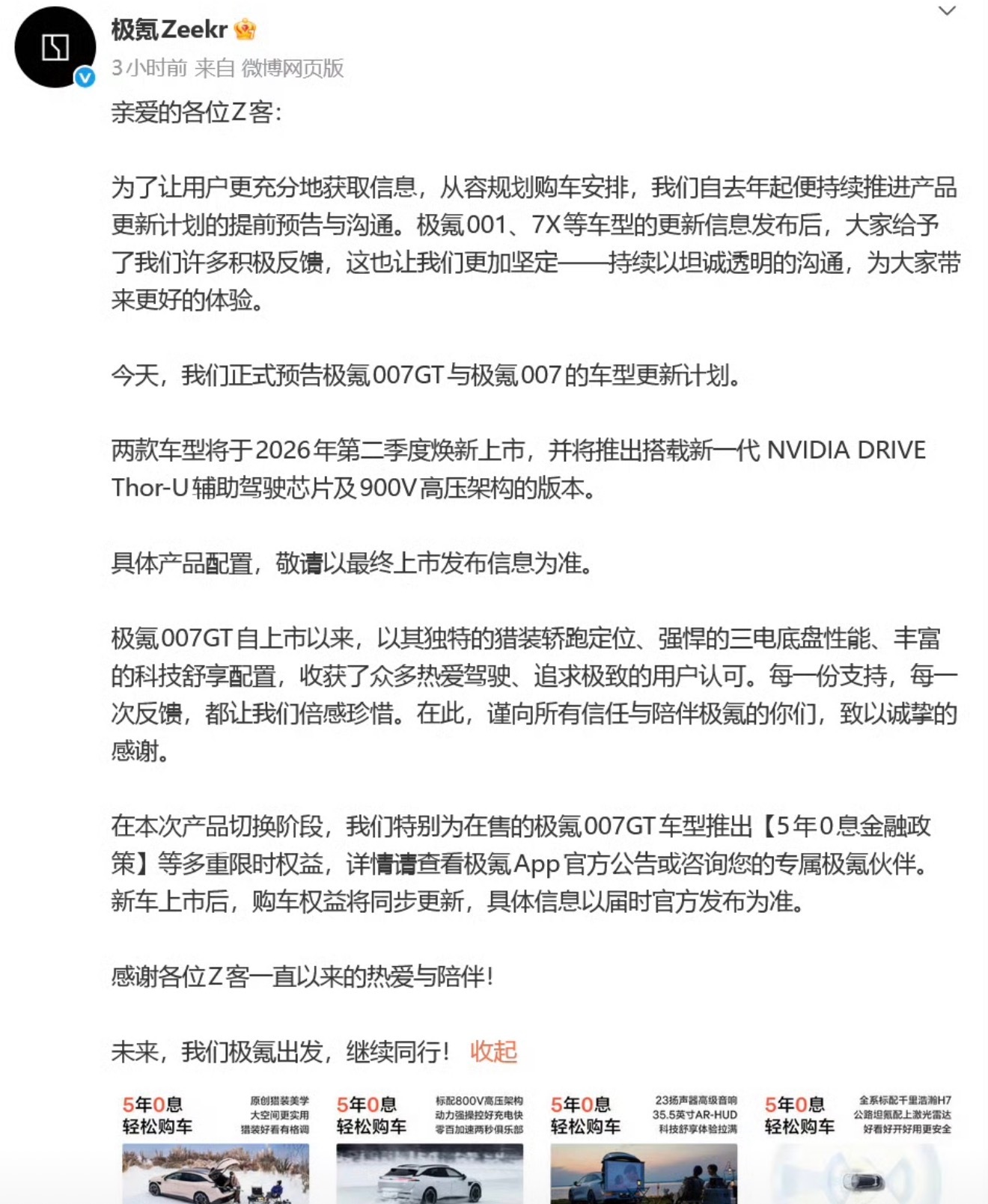 新款极氪007家族将于第二季度上市新款极氪007GT与极氪007,即将在今年第二季度上市,新车搭载新一代 NVIDIA DRIVE Thor-U辅助驾驶芯片及900V高压架构。阿远说车