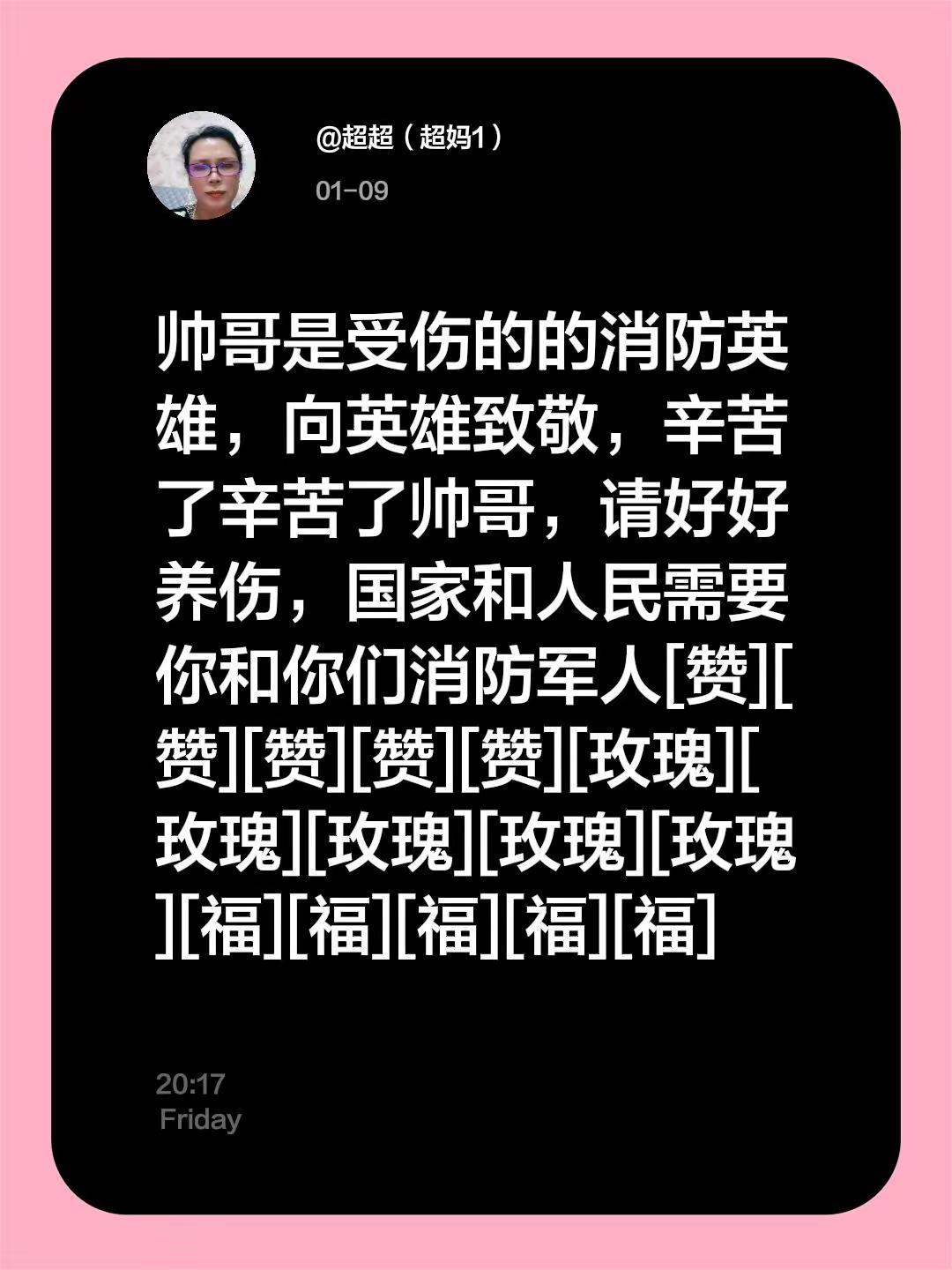我评论了@超超(超妈1) 的作品:帅哥是受伤的的消防英雄,向英雄致敬,辛苦了辛苦了帅哥,请好好养伤,国家和人民需要你和你们消防军人[赞][赞][赞][赞][赞][玫瑰][玫瑰][玫瑰][玫瑰][玫瑰][福][福][福][福][福]