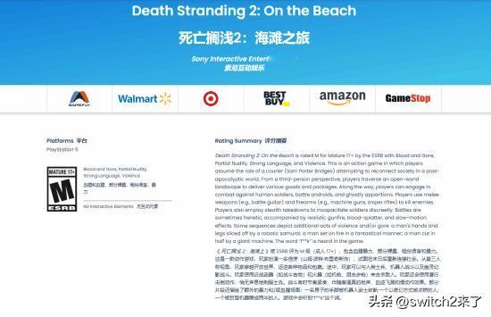 近日,《死亡搁浅2》PC版的评级页面在经历去年11月的短暂上线和撤回后,现已正式恢复。 因为主机版已经发售,大家对游戏内容其实早就烂熟于心了。这次评级主要确认了一点:PC版没有和谐。