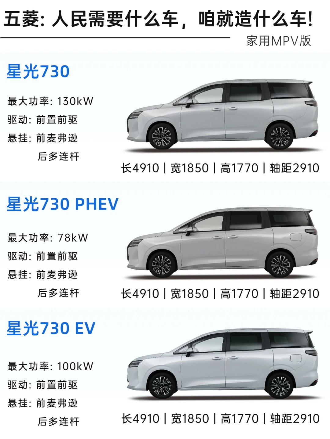 五菱很容易让人联想到以前的小面包车,即能装人,又能拉货,便宜又耐用的多功能车,现在的星光730外观沉稳大气,定价在7.68-10.98万之间,价格依旧很五菱,7万多的手动挡、大7座MPV,10.98万的纯电500公里续航里程。并且是侧滑门的,这价格还要啥自行车?
