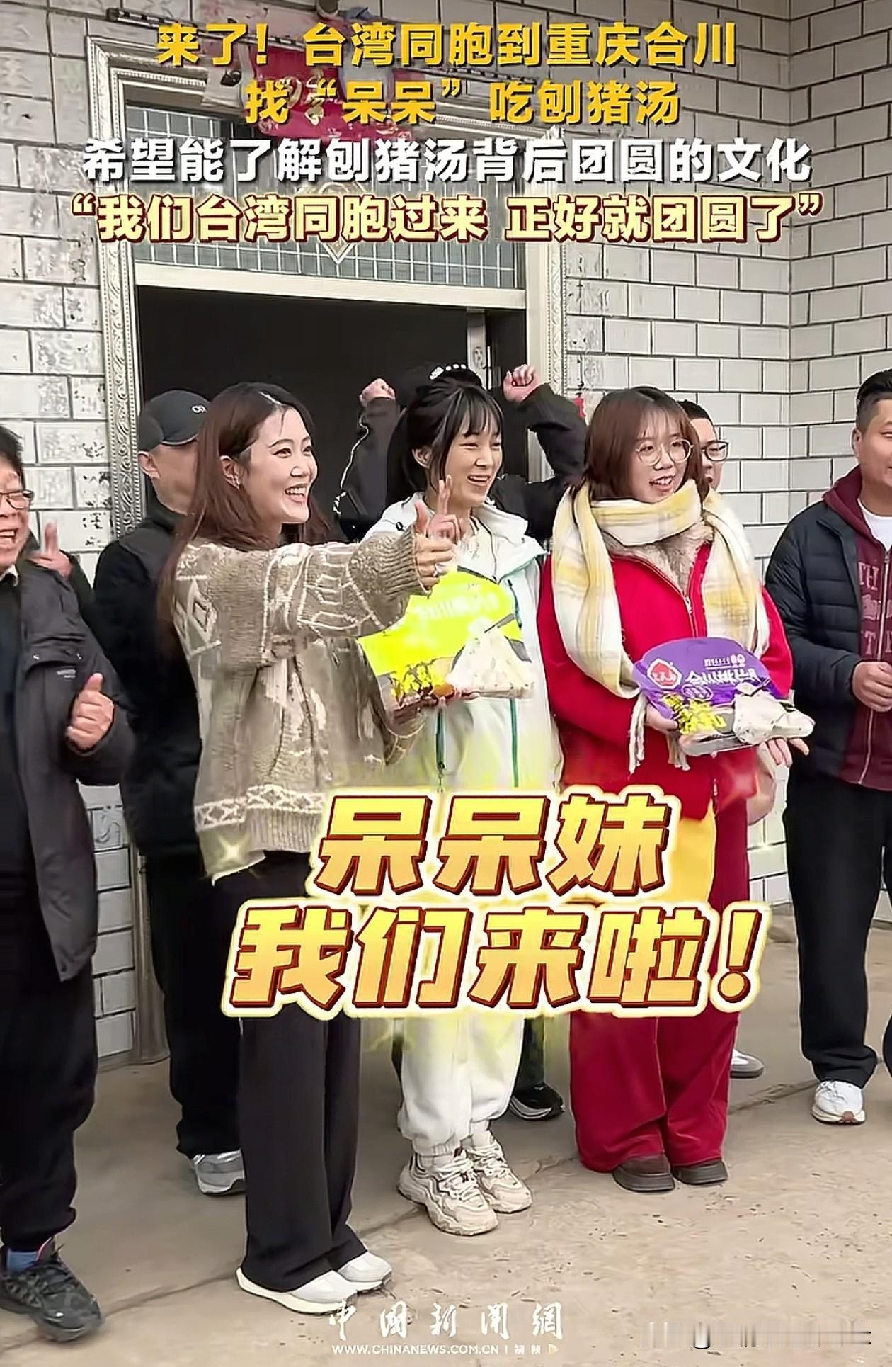 台湾同胞到呆呆家吃杀猪饭, 大家发现没, 呆呆在聊天过程中, 坐姿端正却不局促,说话时眼里带着真诚的笑意,没有丝毫的怯场或刻意讨好。 今天台湾同胞到达呆呆家,呆呆还是一身简单装扮。她说:“有台湾朋友来看我,我特别意外,小时候也会看那些台湾的明星,然后(他们)说话也很好听。有你们在,我觉得这个年过得特别有意义。” 何止呆呆觉得有意义,连屏幕上的网友都感受到了两岸一家亲的温暖。呆呆像招待远道而来的亲戚一样,分享着自家的饭菜,聊着自己的感受。 此时此刻,那些复杂的议题,那些遥远的隔阂,在这样的场景里都变得轻松起来。相信这份温暖会让更多两岸同胞明白:我们从未遥远,因为我们本就是一家人!