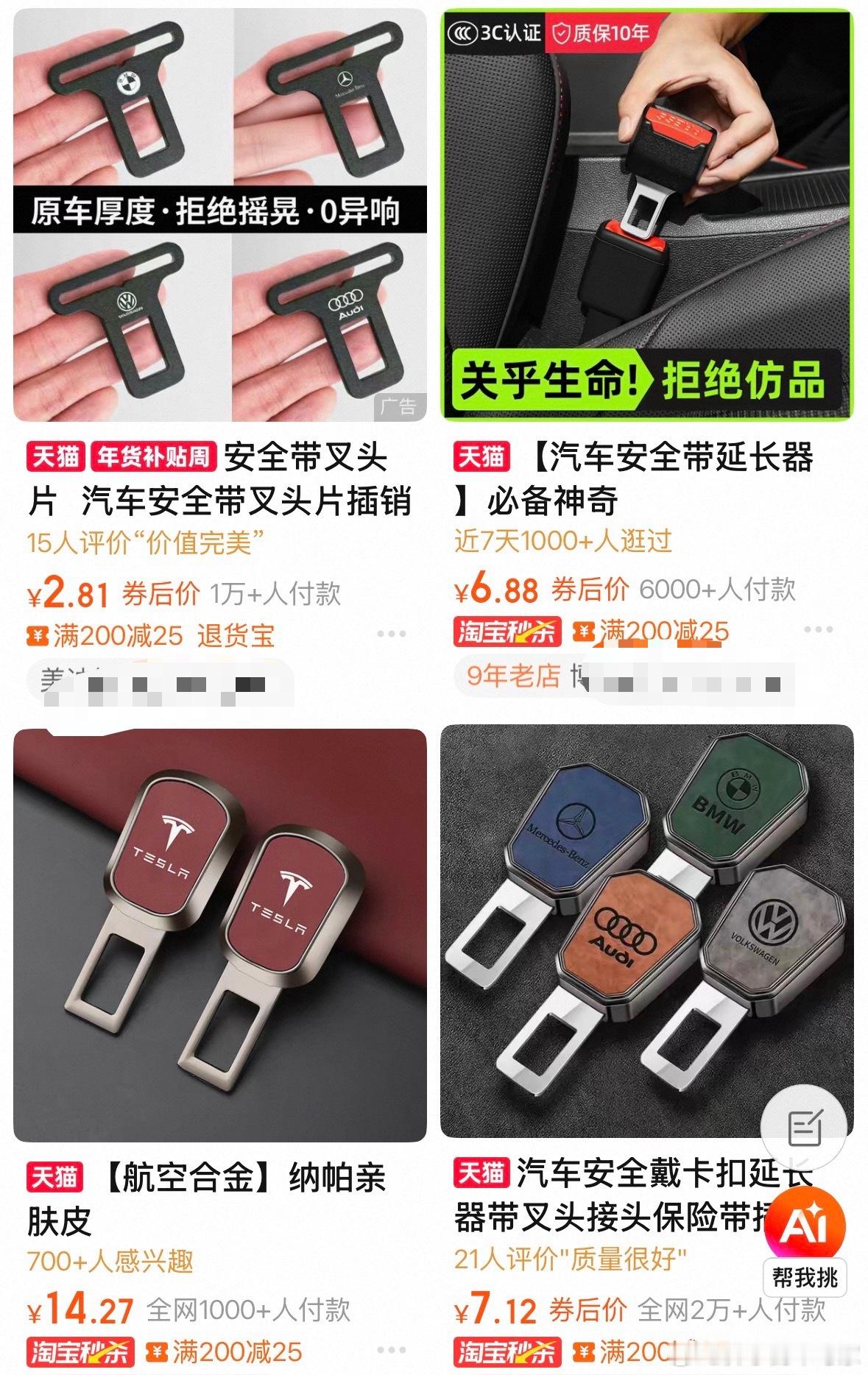 这个东西居然还能卖,纯纯的危害生命安全,以前叫安全带卡扣,现在改名了叫安全带延长卡扣…我开了这么多车还没见过安全带不够长的,更搞笑的是宣传图写着关乎安全大v聊车