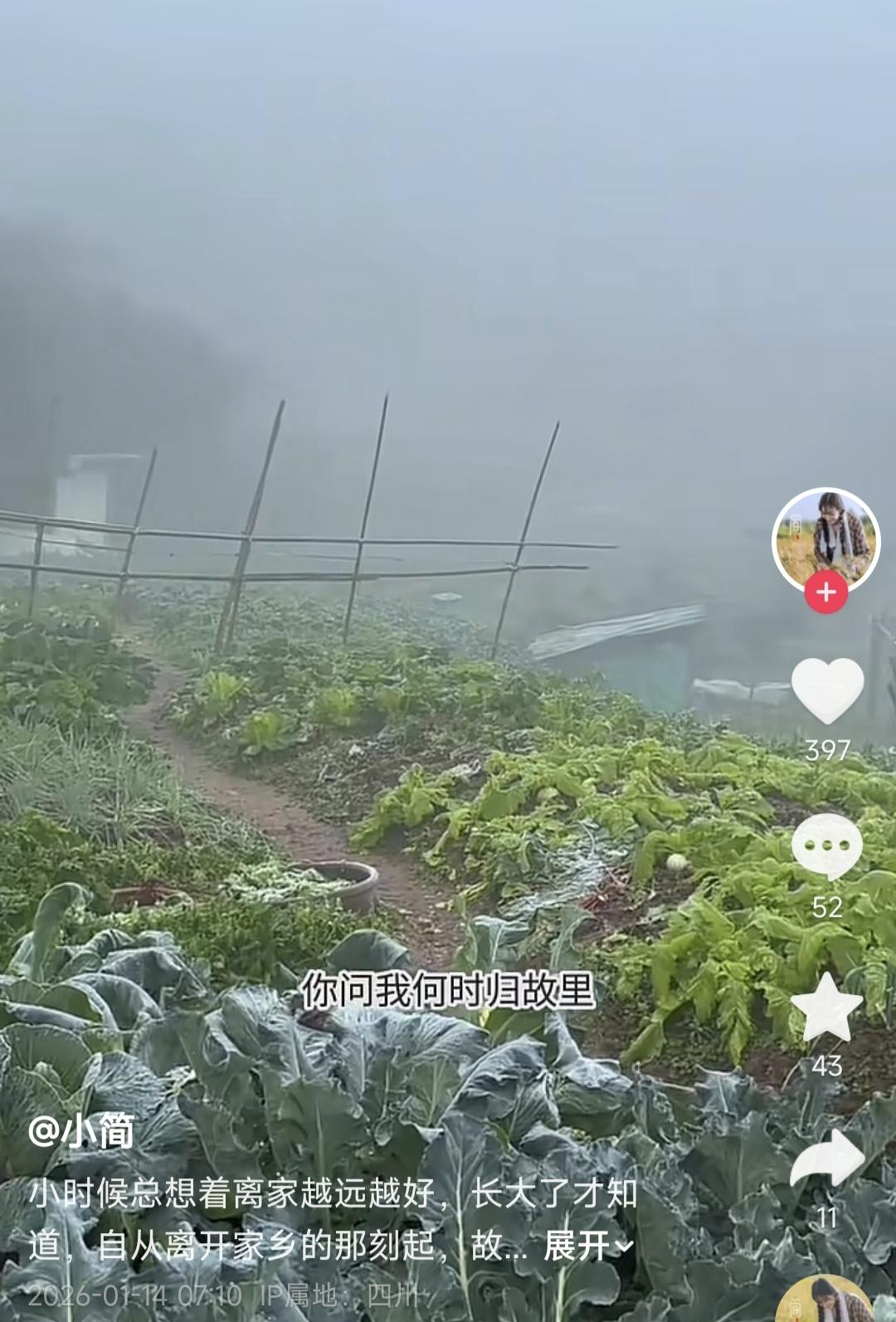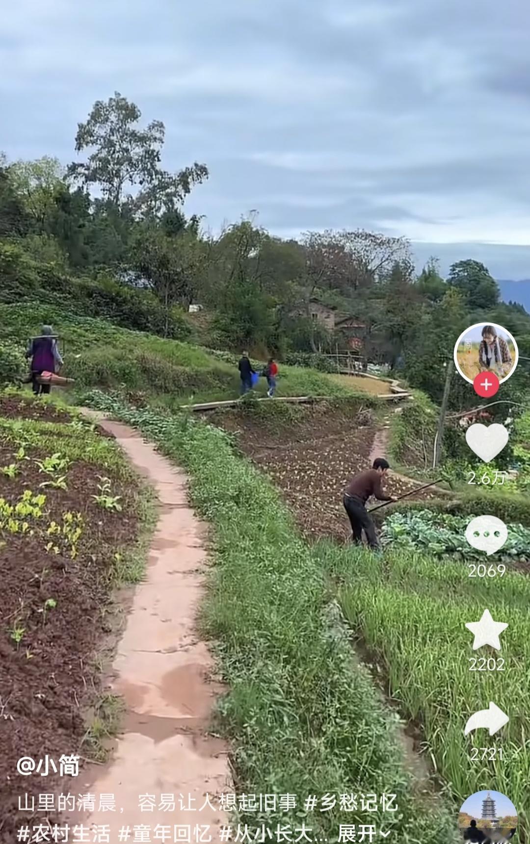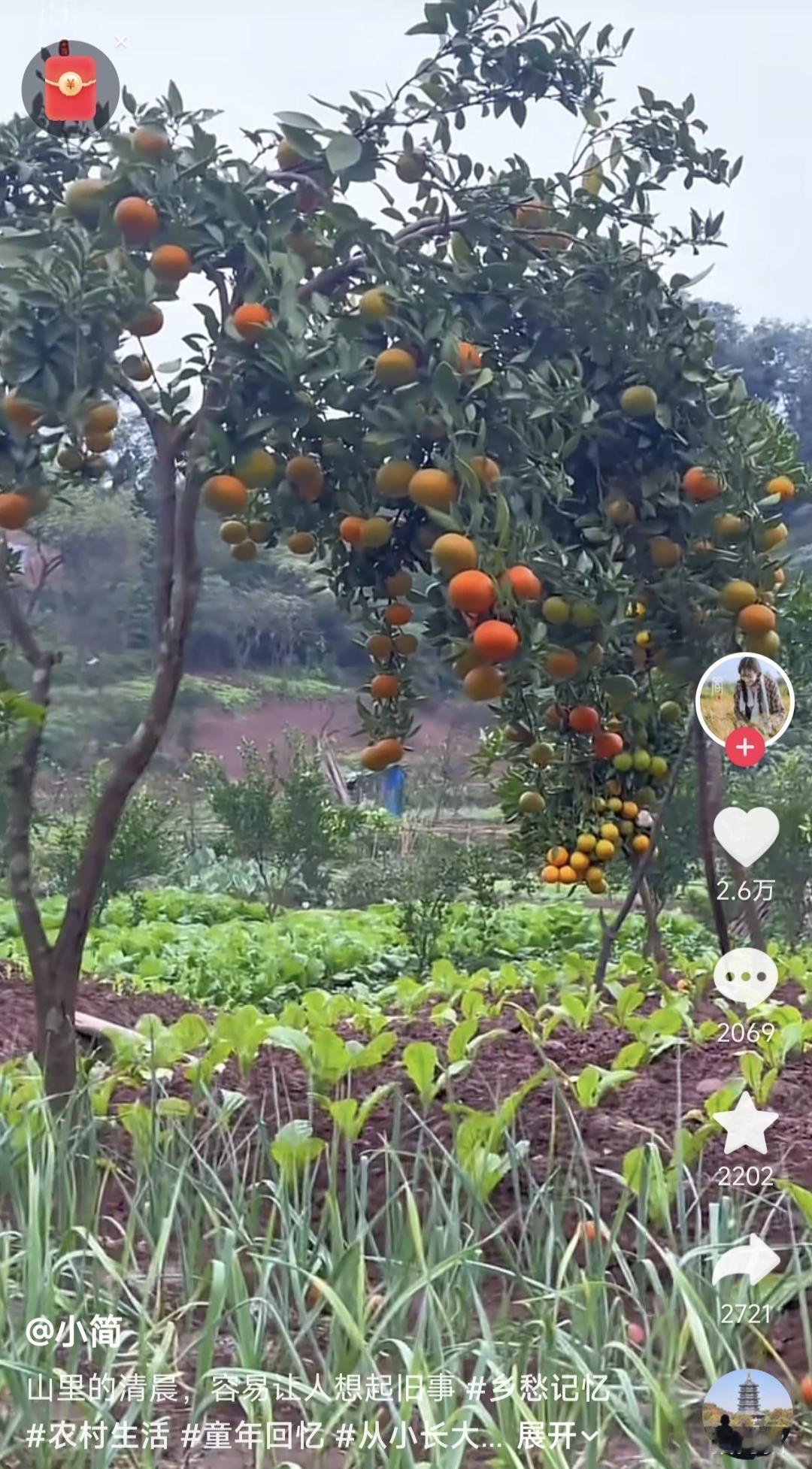 这简直就是四川盆地山村的标准照,今天刷到这个视频,感觉自己回到了童年,这样的环境跟我童年生活的山村有90%的相似度。菜地小径果树,蛙叫虫鸣,春季生机勃勃冬季霜雾满天,就在这样的山村当中,度过了一生中最愉快的一段岁月童年。那个年代天地都是乐园,上学放学路上虽然有点艰辛,但村子里的孩子相约成伴,一路都是欢声笑语。真的很怀念那样简单淳朴的岁月,没有现在这么大的压力。不同的是,现在冬天已经很难有积雪了,而我们小时候的四川山村,年年冰雪覆盖,冬季也是孩子们最快乐的季节。