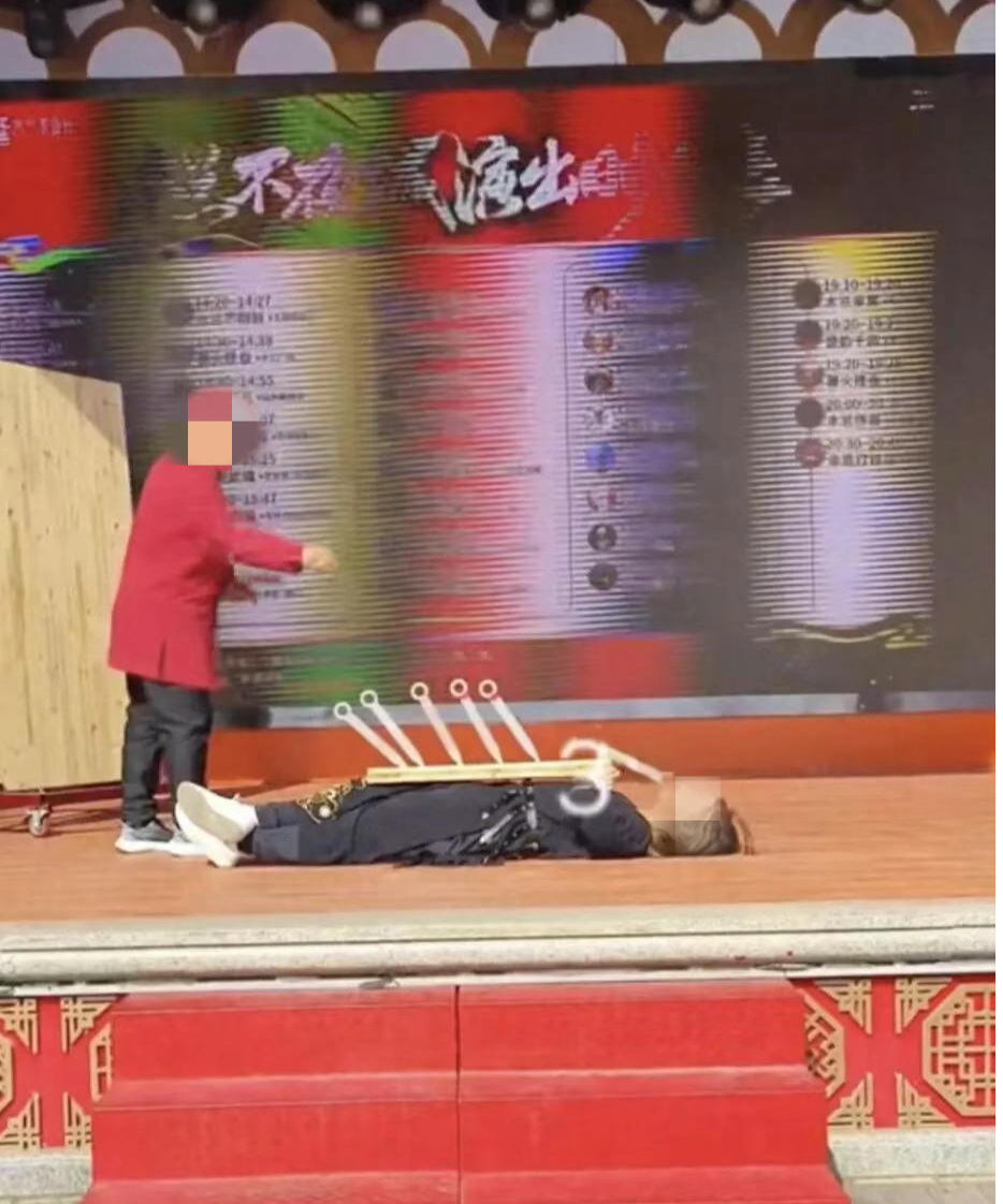 #景区回应飞刀表演砸伤演员#【#一景区飞刀表演砸伤演员面部#,景区称演员仅擦伤,相关部门已到现场处理】近日,有网友在社交平台发视频称,一景区进行飞刀表演时疑似发生失误,飞刀砸在了表演者面部,引发网友关注。红星新闻记者注意到,相关视频显示,一名黑衣男子躺在舞台上,身上放着一块木板。另一红衣男子手持6把飞刀依次向木板投掷,前5把刀都扎在了木板上,但最后一把刀却飞向了黑衣男子面部。视频画面中,飞刀的刀柄磕到黑衣男子面部后弹开,黑衣男子迅速捂住面部,扔刀的红衣男子赶紧上前查看。据悉,该事件发生在湖北省武汉市黄陂区的木兰不夜城。1月16日,红星新闻记者致电该景区,一名接线工作人员回应称,此事发生在1月13日下午,黑衣演员因此受了擦伤,但并非网传的受伤严重。该工作人员向记者透露,景区的飞刀表演系第三方公司承包,两名表演者都是第三方公司的演员:“因为受伤不严重,所以并没有去医院,表演者自行进行了处理。”该工作人员表示,目前景区仍正常进行飞刀表演,受伤演员也已正常开展工作。对于此次表演者受伤的原因,接线工作人员向红星新闻记者解释:“很多网友认为是甩飞刀者出现失误,实际上接飞刀者也有失误。”据这名工作人员了解,飞刀表演关键在于接飞刀者,如甩飞刀者失误,接飞刀者需及时避开。因此,接飞刀者需有一定功底以保障安全性。同时,这名接线工作人员还表示:“飞刀表演使用的刀没有开刃,所以并不锋利。”针对此事,红星新闻记者于1月16日下午致电黄陂区文化和旅游局,一名接线人员表示:“我们已接到相关反馈,文化和旅游市场执法大队已到现场处理。”网页链接