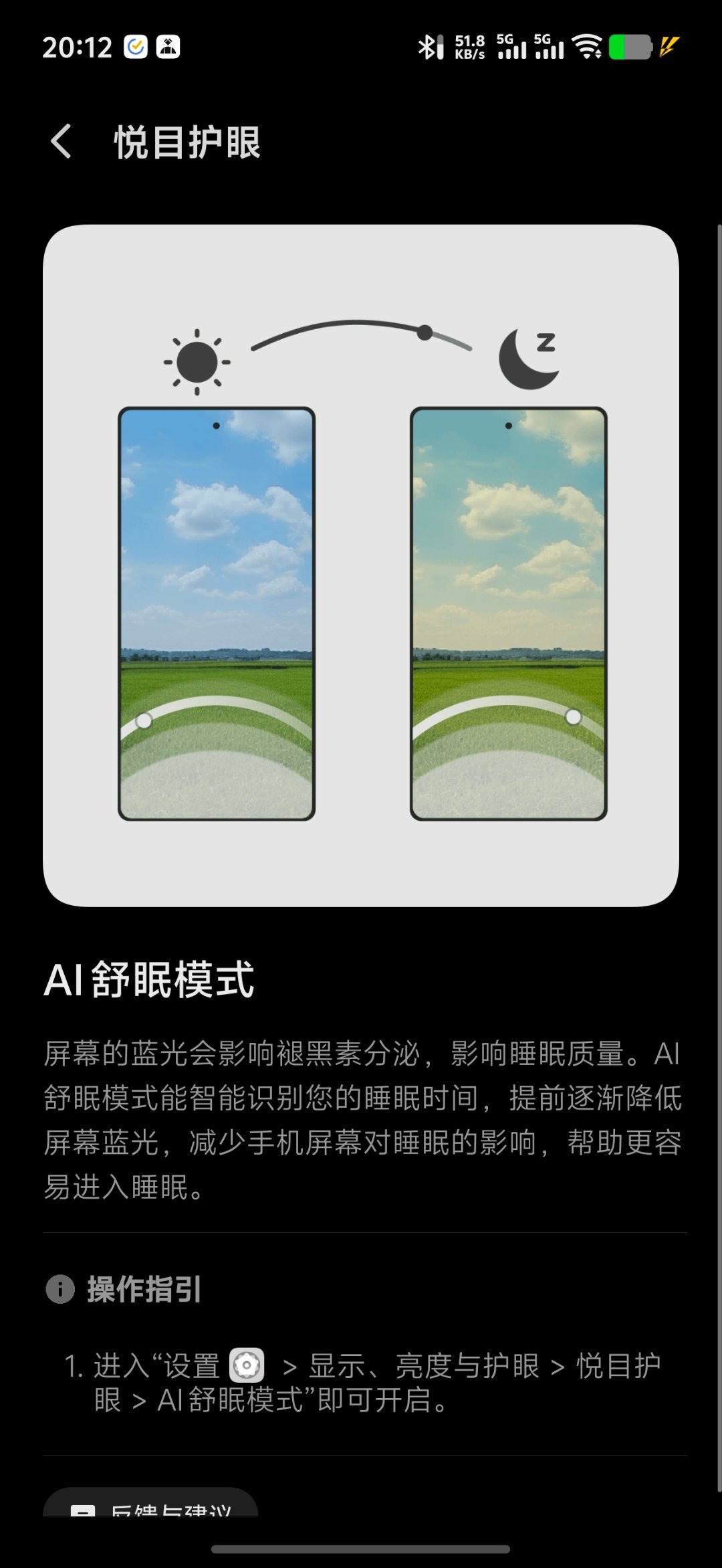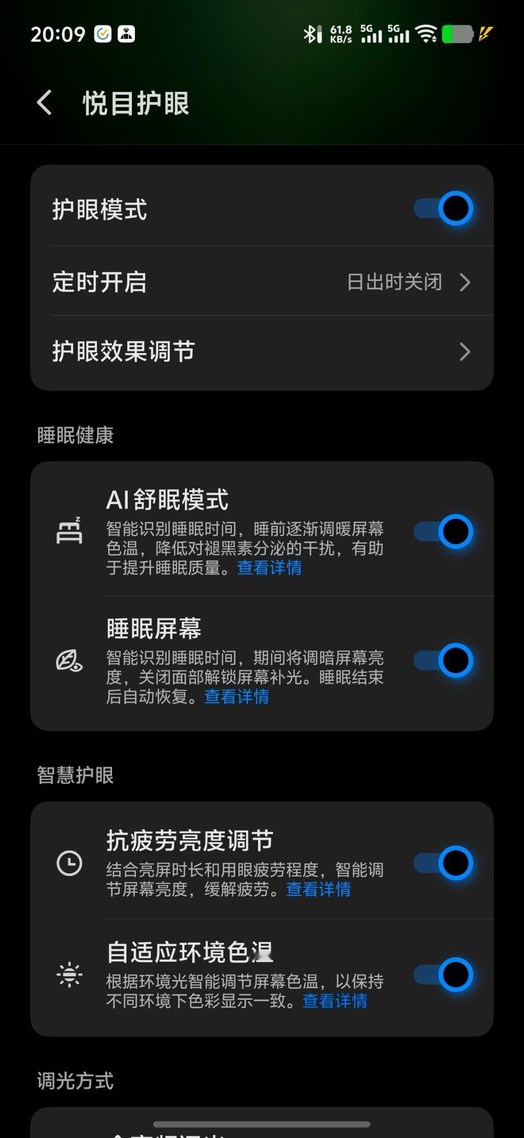 originOS的这个护眼功能做得太好了哥们每天睡得都挺早,下午睡,凌晨醒。它进入护眼模式,不是突然切换。而是根据睡眠规律时间,渐进式过滤蓝光夜间亮度自动调节,不用担心指纹或人脸闪光弹。到点了也会自己调回来目前除了手电筒快捷打开不够好用之外我还真没遇到啥软件体验的痛点