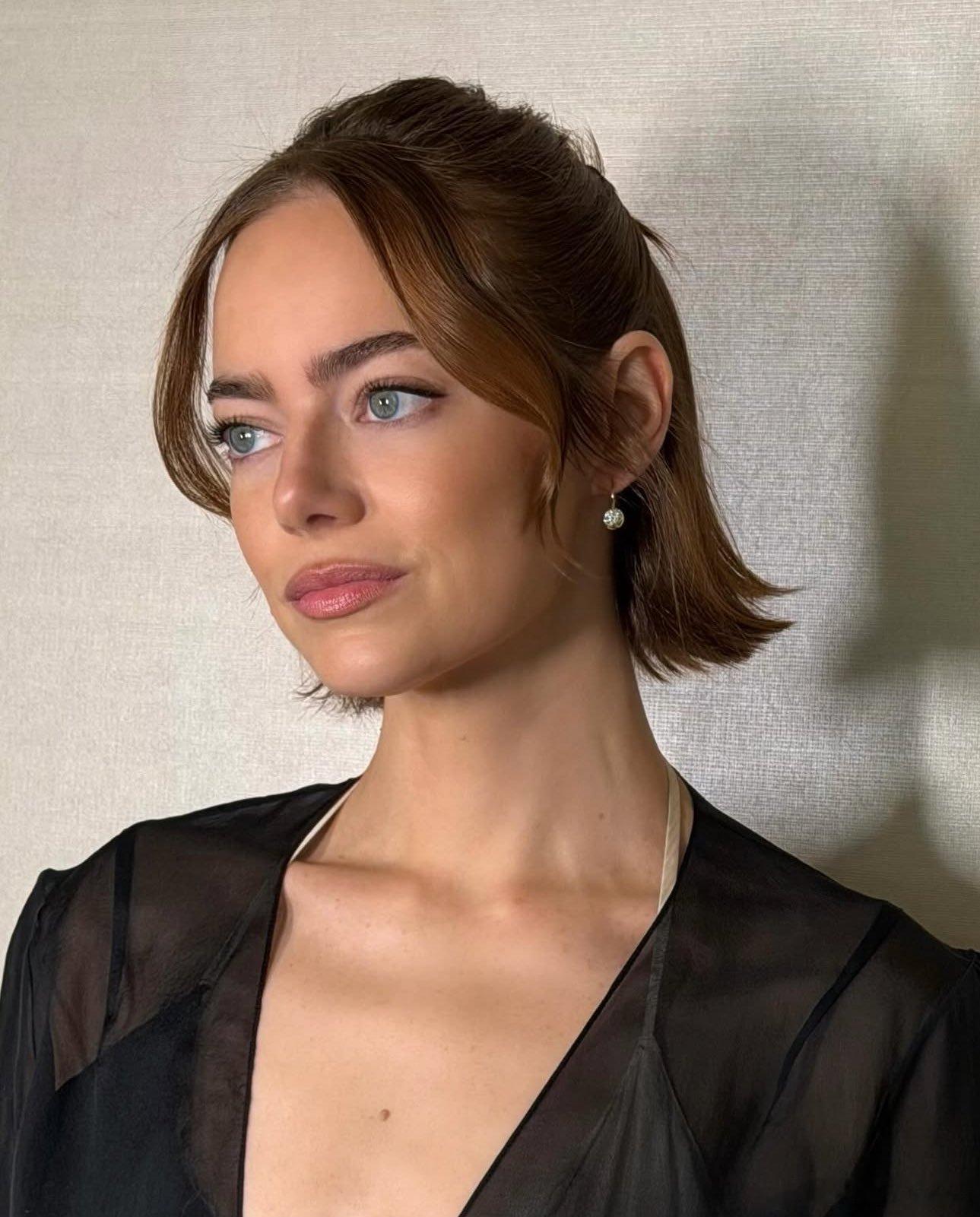 emma stone艾玛斯通近期活动造型,扎半头好温柔