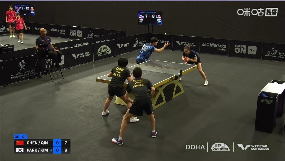 国乒三对混双组合,只有蒯曼/陈垣宇晋级四强! 多哈球挑战赛,混合双打1/4决赛。 陈熠/黄友政1:3(14-12;10-12;12-14;9-11)不敌中国香港杜凯琹/黄镇廷。 覃予萱/陈俊菘1:3(7-11;6-11;11-7;8-11)不敌韩国金娜英/朴康贤。 很遗憾,混合双打只有蒯曼/陈垣宇晋级四强!
