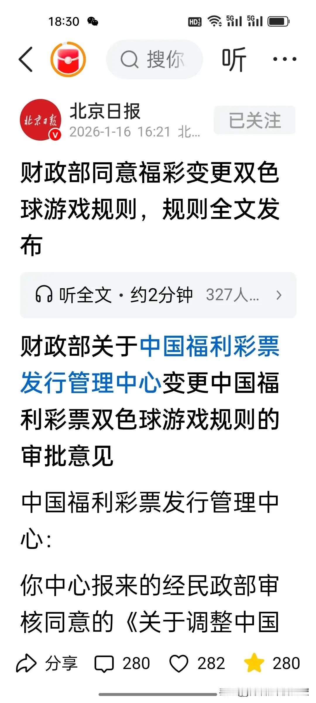 2026体彩福彩新规落地,3个红球就中奖,增加彩民获得感! 为何要在此时对体彩福彩规则进行修改呢?俗话说“事出有因”,此次规则调整并非心血来潮,而是有着深远的考量。 其核心目的在于平衡公益与可持续发展,让彩票事业更好地回归“扶老助残”的公益初心。曾经,旧规则存在奖池易清空、中小奖覆盖面窄等问题。 就像一个“漏斗”,让很多彩民的希望如沙子般从指缝间溜走。而新规的出台,就是为了堵住这些“漏洞”,让老彩民重拾信心,也让新彩民更愿意参与其中,为彩票市场注入新的活力。 此次新规的重点调整内容可谓亮点十足,堪称“给力”之举。先看大乐透和双色球,分别新增了“好运奖”和“福运奖”。当奖池资金达到或超过15亿元时,只要中3个红球,就能稳稳拿到5元奖金。 这就好比在一片荒芜的土地上,突然长出了许多“幸运之花”,让彩民们中奖的概率大幅提升,仿佛伸手就能触摸到那份幸运。 再说说一、二等奖的变化。新规为它们设置了亿元封顶,这是为何呢?其实,这是为了避免奖金过度集中,防止奖金被“稀释”。 想象一下,如果奖池奖金很高,却被少数人拿走大量奖金,那对于众多彩民来说,岂不是有些“不公平”?而现在的封顶机制,就像是给奖金戴上了一个“安全帽”。 让大奖的分配更加合理,也让奖池能够保持一定的资金量,为后续的派奖提供保障。快乐8在新规下也有了新变化,高奖级改为浮动奖。 这一调整让奖金设置更加灵活,能够根据实际情况进行合理分配,就像一个智能的“调节器”,让游戏规则更加科学。 而竞彩方面,单票限额6000元的规定,则是在引导彩民理性购彩。以前,有些彩民可能会因为一时冲动,进行几十倍甚至上百倍的投注,试图“一夜暴富”,结果往往是竹篮打水一场空。 现在有了限额,就像是给彩民们浇了一盆“冷水”,让大家能够更加冷静地对待购彩,明白购彩只是一种娱乐方式,而非投机暴富的手段。 或许有人会问,新规实施后,具体的购彩体验会有什么不同呢?以大乐透为例,假设你买了一注并进行三倍投注。 在中小奖方面,三倍金额和旧规相同,而且因为新增了3红中奖规则,中奖概率提高了,这就相当于你有了更多“中奖机会”。 而在中一等奖时,如果奖金未达到封顶额度,三倍金额依旧不变;但如果触发了封顶,那么你拿到的金额会比旧规低。 不过,从整体来看,这种变化是为了让彩票机制更加公平、合理,让更多人能够享受到中奖的喜悦。 总的来说,2026体彩福彩新规的落地,是彩票行业的一次重要变革。它让小奖能够“雨露均沾”,让更多彩民能够品尝到中奖的“甜蜜果实”。 同时也让大奖更有保障,不再让人觉得遥不可及。彩民们的获得感因此得到了极大提升,仿佛置身于一个更加公平、公正、充满希望的购彩环境中。 相信在新规的推动下,彩票市场将迎来更加健康、有序的发展。今年的各类彩票销量,或许真的会如预期般再攀高峰。 但无论如何,彩民们都应牢记,购彩应保持理性,以一颗平常心对待,毕竟“小赌怡情”,享受购彩过程中的乐趣,为公益事业贡献一份力量,才是彩票的真正意义所在。