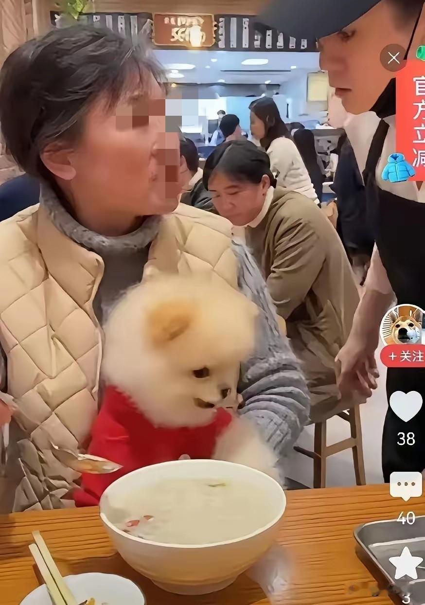 这大妈,到饭店吃饭,不仅带狗进入,还竟然用饭店勺子喂狗。对服务员的劝阻置之不理,无理搅三分。 不知道她在家是不是和狗用一套餐具?即便人狗共用,那是你家。你在家和狗怎么亲,那是你个人的事,饭店是公共场所,是不允许带宠物进入的,更不能用餐具喂狗,这是起码的公德和底线。 狗是人类的朋友,应该善待。但不至于像有的养狗人那样管狗叫儿子、当孩子,何等的畸形,你的孩子怎么想?你把他们和自己置于何地,不可思议! 带狗上餐厅 狗上桌事件 饭店小狗 带狗上餐桌