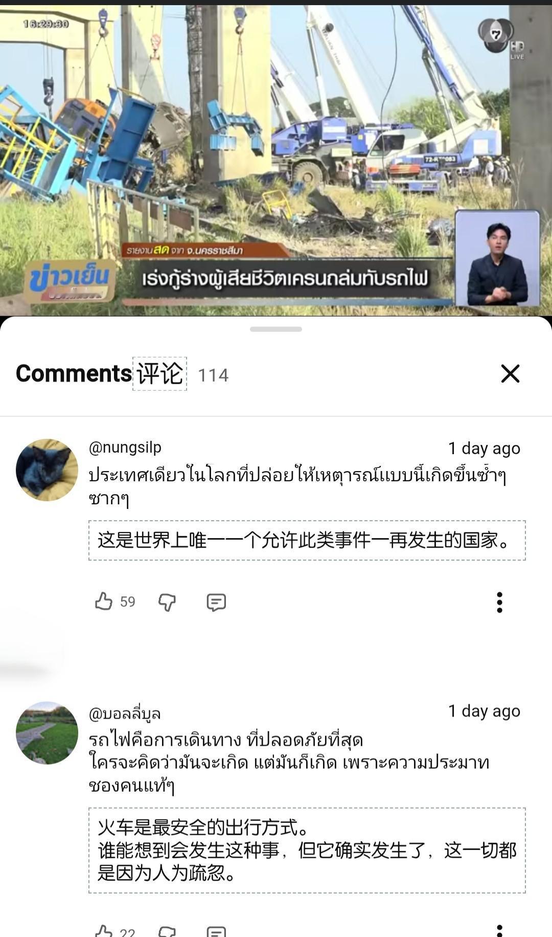泰国高铁出事, 中国躺枪, 韩国人却在背后搞事? 这事儿真的离谱。 1月14号泰国在建的高铁工地上,一台大吊车突然倒下来,直接砸中了一辆正在跑的客运火车。 当场死了二十多个人,伤了六七十个,太惨了。 现场视频一看就吓人,车厢都压扁了,火也烧起来了。 一开始网上全在传是中国修的高铁出问题。 结果很快中国大使馆就出来澄清了,说出事那段根本不是中国企业干的,是泰国本地一家叫ITD的公司负责的。 中方人员一个没伤亡,项目也不是我们建的。 让人没想到的是,泰国自己都认了责任,不少韩国网友反倒开始带节奏。 他们在评论区拼命往中国身上甩锅,说什么“中国标准不行”“早就该防着中国基建”。 明明和韩国也没关系,就是看热闹不嫌事大,甚至有点幸灾乐祸的意思。 这操作真是够分裂的。 一边想蹭中国的经济热度,一边又恨不得把所有问题都怪到中国头上。 说实话,这种心态,真挺累的。